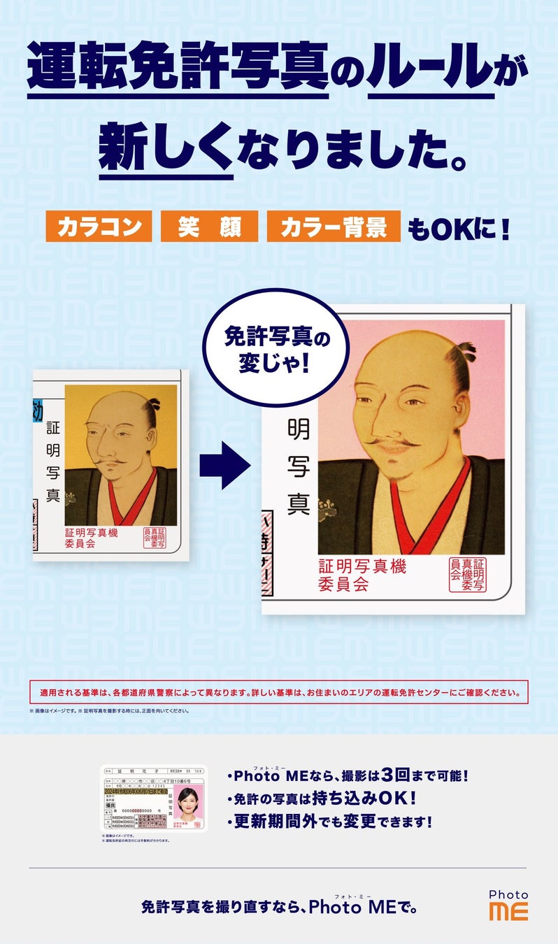 坂本龍馬と織田信長が、笑顔の運転免許証写真を公開!? Photo ME が運転免許証写真の新ルール啓蒙キャンペーンを開始!