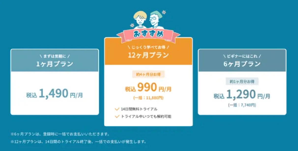 Jazz-Stepsはサブスクモデルのウェブサービスで、「1ヶ月プラン」「6ヶ月プラン」「12ヶ月プラン」の3プランを用意しております。
