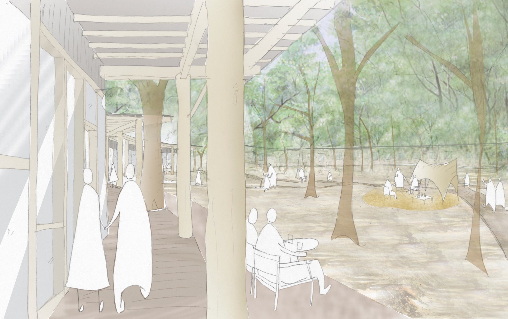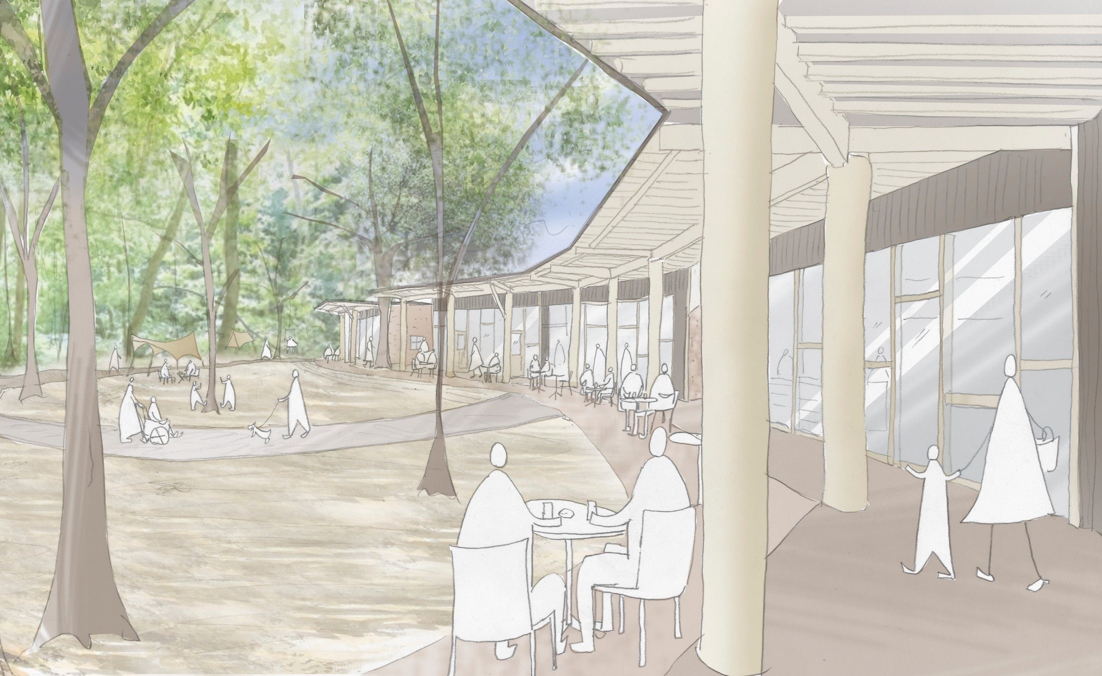 緑豊かな森の中に誕生するのは、持続可能な事業に取り組む仲間たちが全国各地から集まるショップエリア。自然を楽しむアウトドアギアのお店に、堆肥化を意識したコーヒーロースタリーカフェなど、“森との共生”を目指しながら、ゴミを0にする“ゼロ・ウェイスト”にも取り組んでいきます。