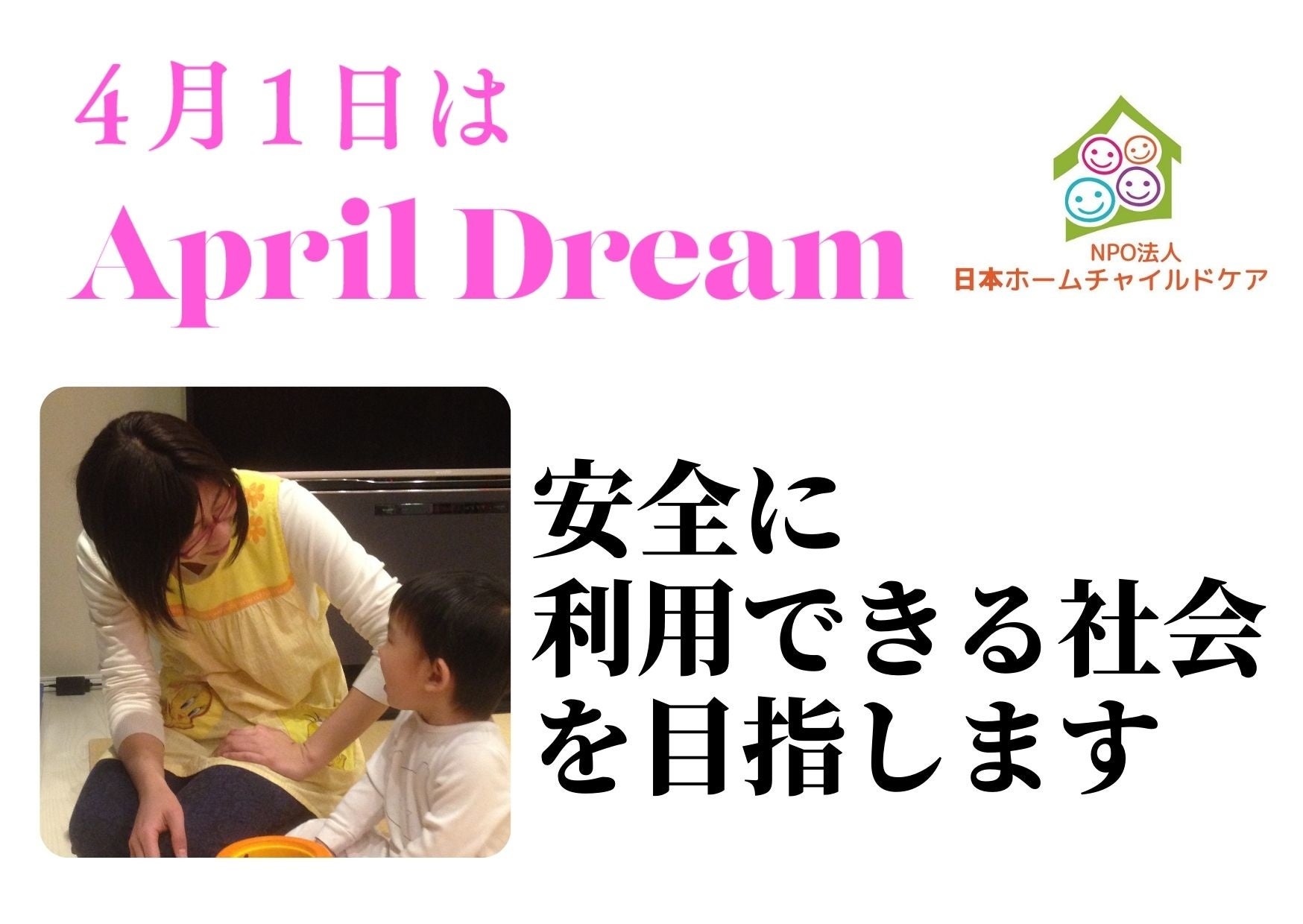 当社は、4月1日を夢を発信する日にしようとするApril Dreamに賛同しています。このプレスリリースは「特定非営利活動法人日本ホームチャイルドケア協会」の夢です。
