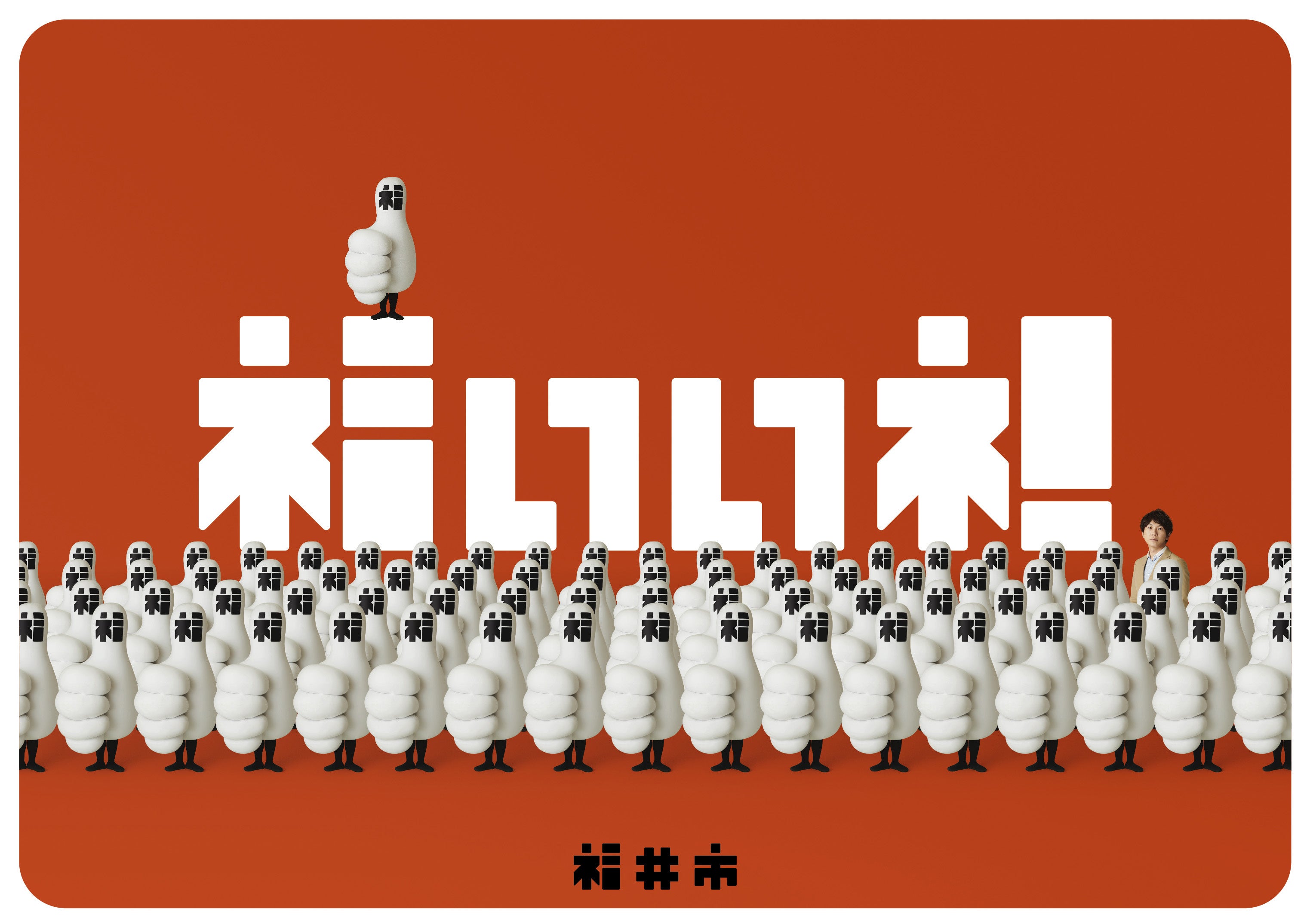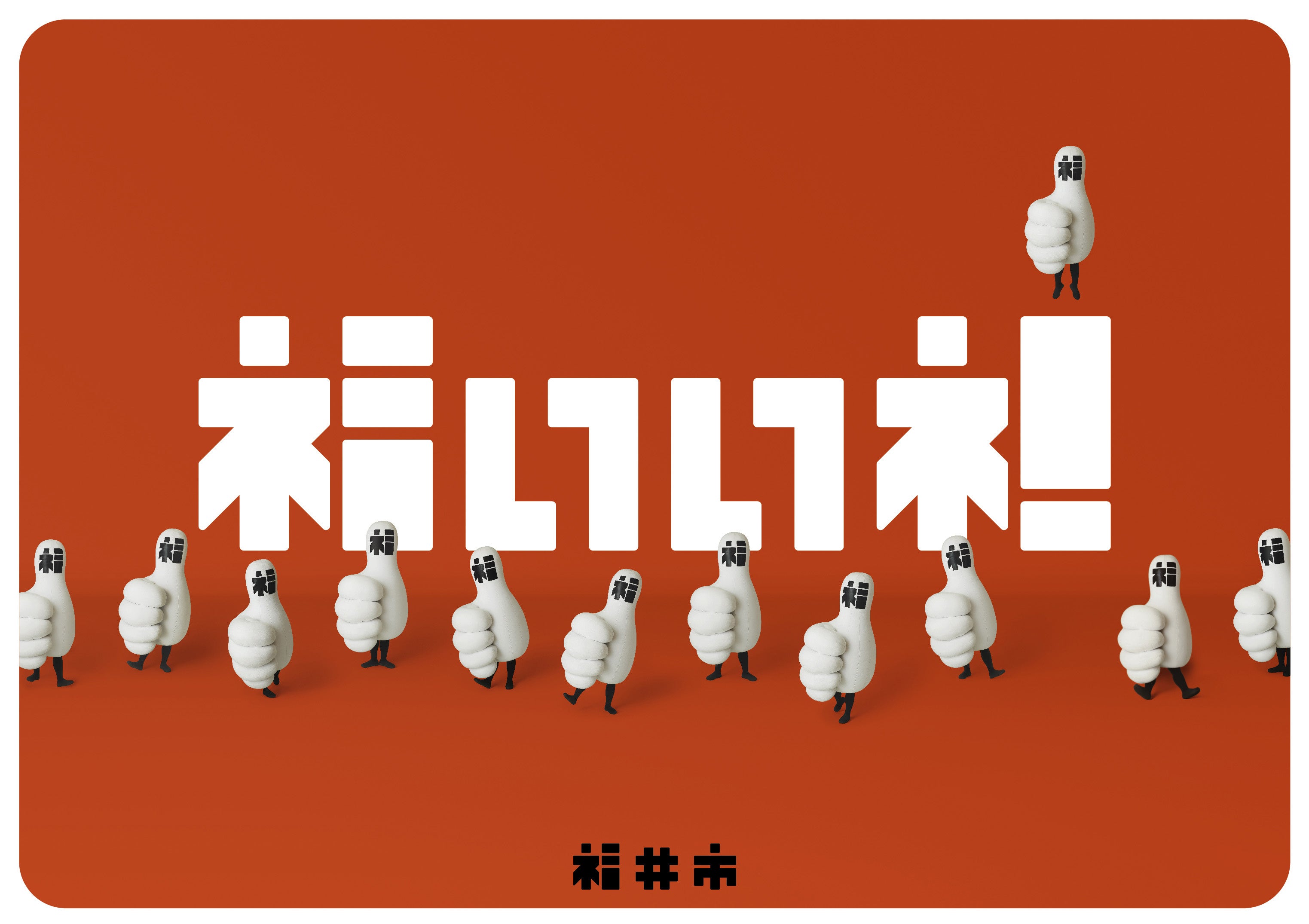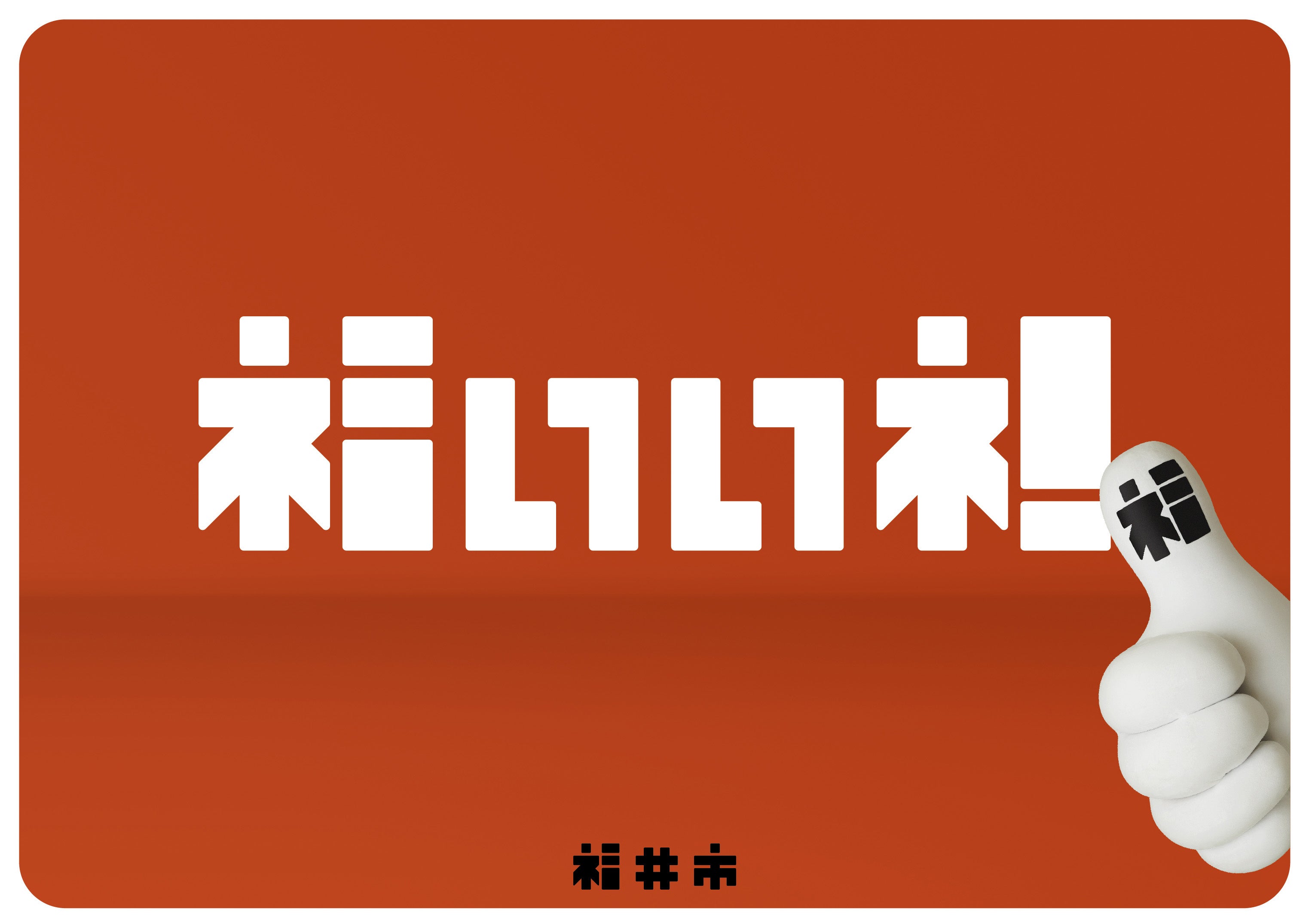 福井市は、北陸新幹線開業に向け全国からの認知度を高めようと2020年7月、親指を立てるロゴやデザインで「福」を強調した「福いいネ!」のイメージロゴを発表。イメージロゴを具現化したキャラクター「福いいネ!くん」と合わせ、各種広報活動に活用しています。