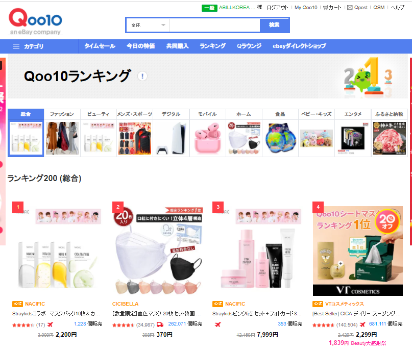 キューテンジャパン(Qoo10JP)にてランキング1位を獲得したマスクパックは、5種類から自分の肌に合った成分のマスクを選んで使用できる効果的な商品である。総合ランキング3位の“ピンクスペシャルセット”はナシフィックのベストセラーフレッシュハーブオリジンライン、フィトナイアシンホワイトニングラインに続き、昨年新しく発売開始したアハバハピンクラインの化粧水、美容液、クリームの3種とブラックヘッドオールキルパック、アイクリームのセットである。