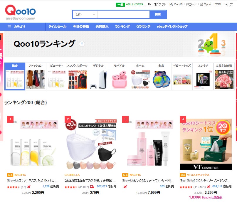 今月9日、韓国の自然主義化粧品ブランド「ナシフィック」が12月8日の当日販売量2,700個以上を記録し、日本の4大インターネットショッピングモールキューテンジャパン(Qoo10 JP)でランキング1位、3位を達成したと明らかにした。