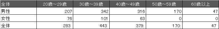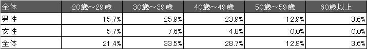 男性は30代から40代からの回答が多く、女性は30代の方から多く回答を頂きました。なお、女性の50代以上の方についてはもともとの母数が少なく、回答数はゼロとなっております。
