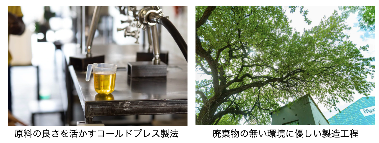 有害な製造廃棄物が無く、残渣を農業等に再利用している原料のみを選定しています。これまで未活用だった野生植物のアップサイクルも重視しています。マルラやバオバブオイルなど、野生種子から搾油されるオイルは、非木材生産物 (Non-timber forest product)の活用を通した、森林保護に繋がっています。