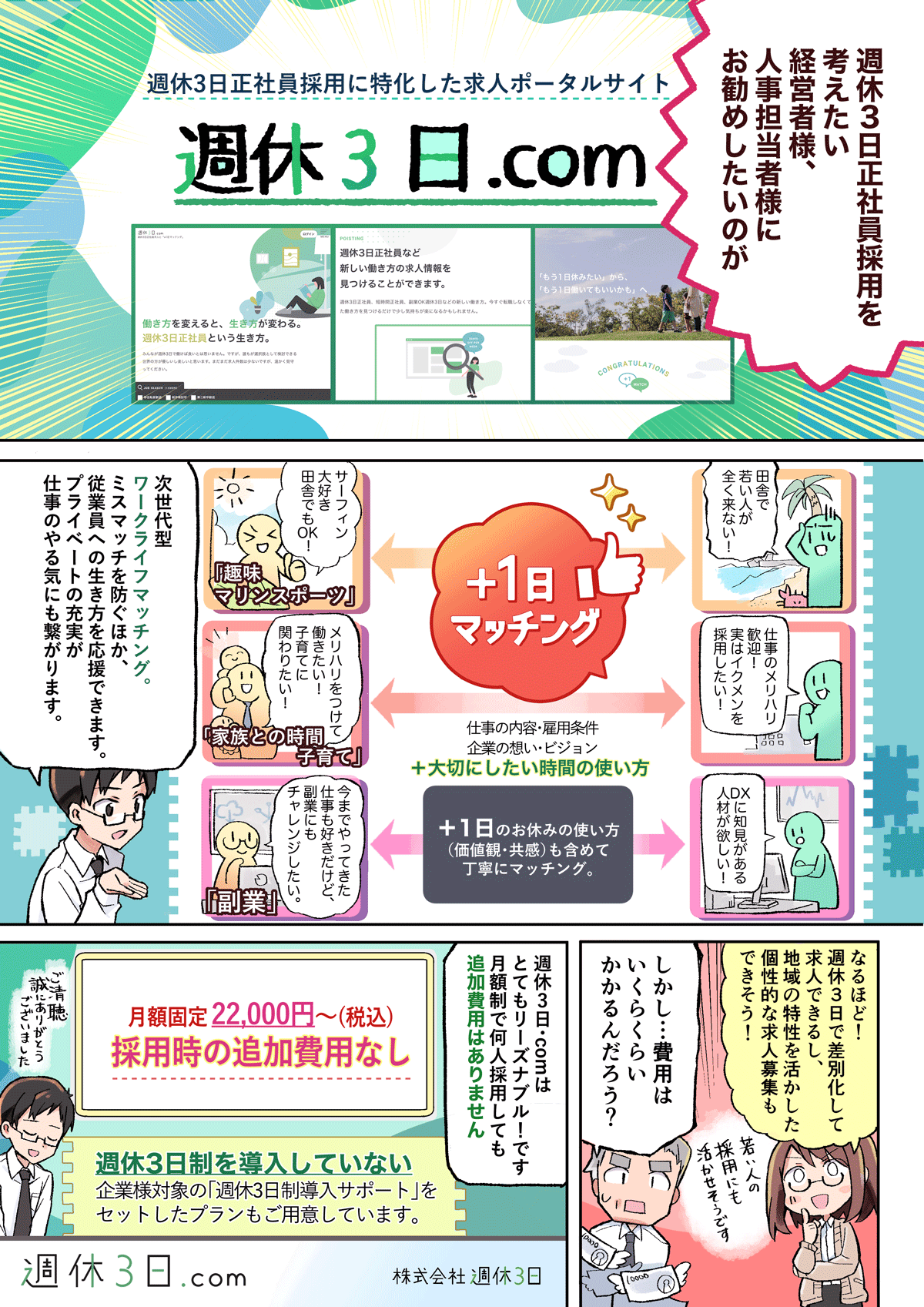 週休3日正社員特化求人ポータルサイト_週休3日.comマンガ2