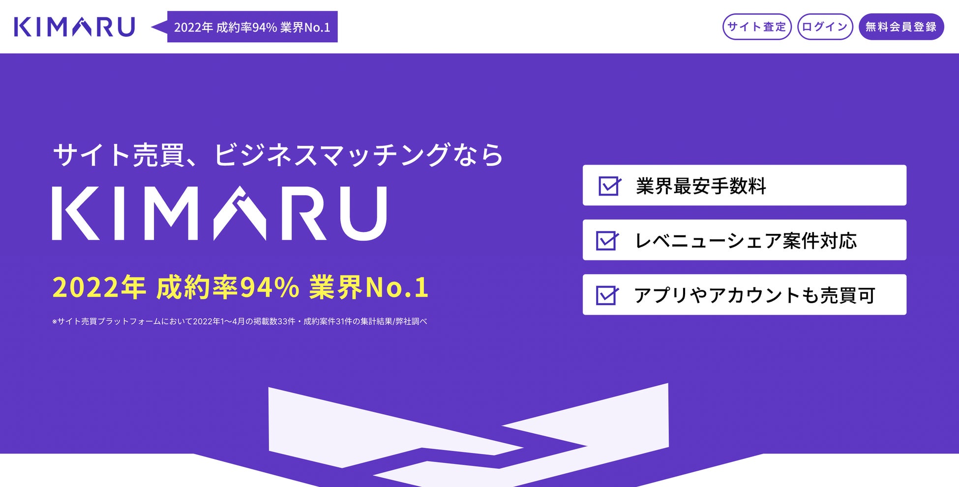 KIMARUは、サイト売買やレベニューシェア案件などを取り扱う”ビジネスマッチングサービス”です。