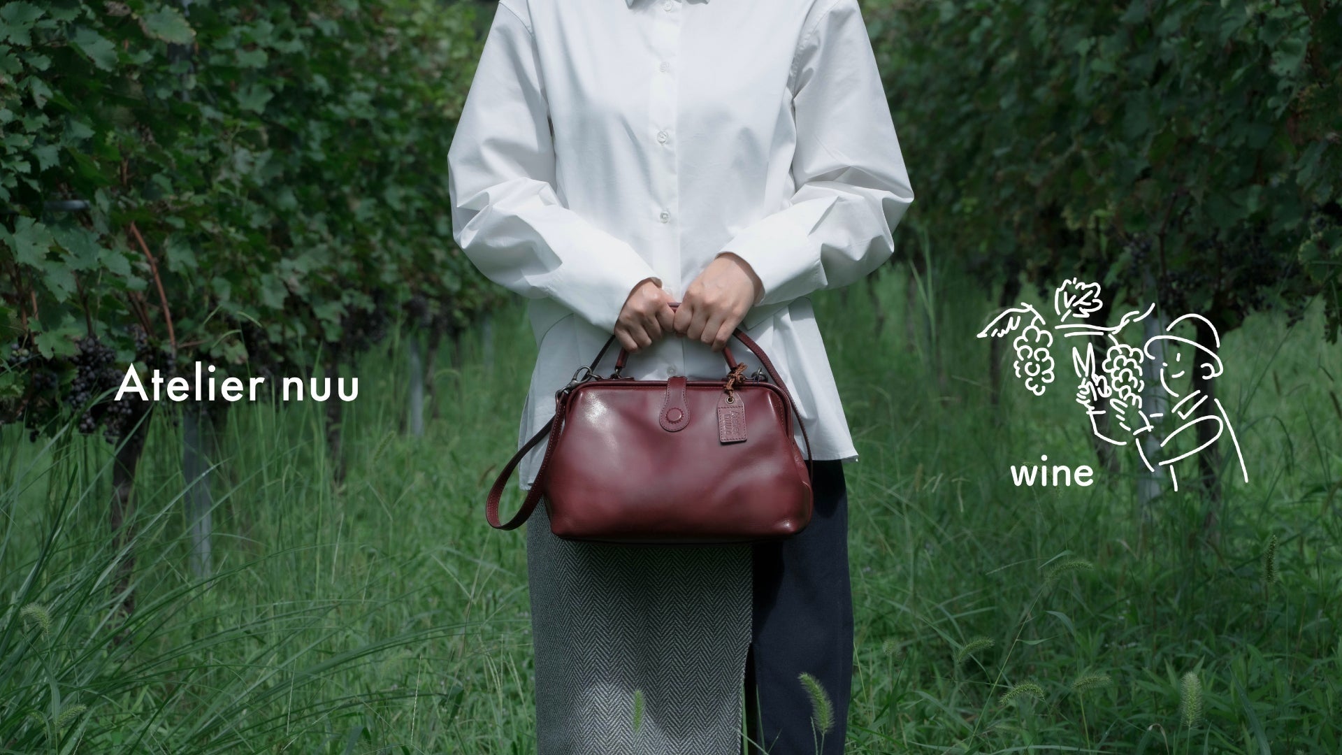 ワインの絞りかすで染めたサステナブルレザー「LEZZA BOTANICA VINO」で生産をしたコレクション。