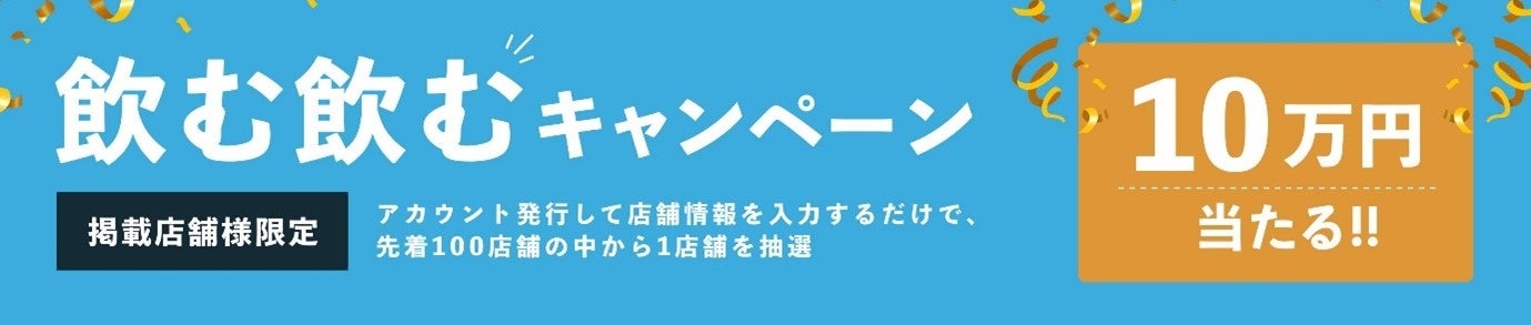 キャンペーンへの参加方法は簡単。「ナニノム」のサイトの右上の「掲載申し込み」をクリックし、種別で「店舗アカウント申請」を選択してください。店舗名、メールアドレス、電話番号、住所を入力の上、「お問い合わせ内容」に「飲む飲むキャンペーンへの応募」である旨を入力してください。先着100店舗の中から、抽選で1店舗に10万円を差し上げます!