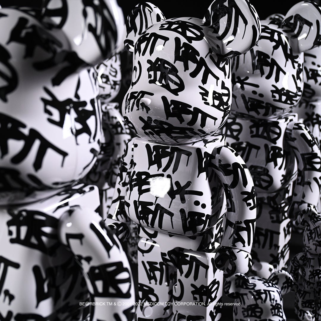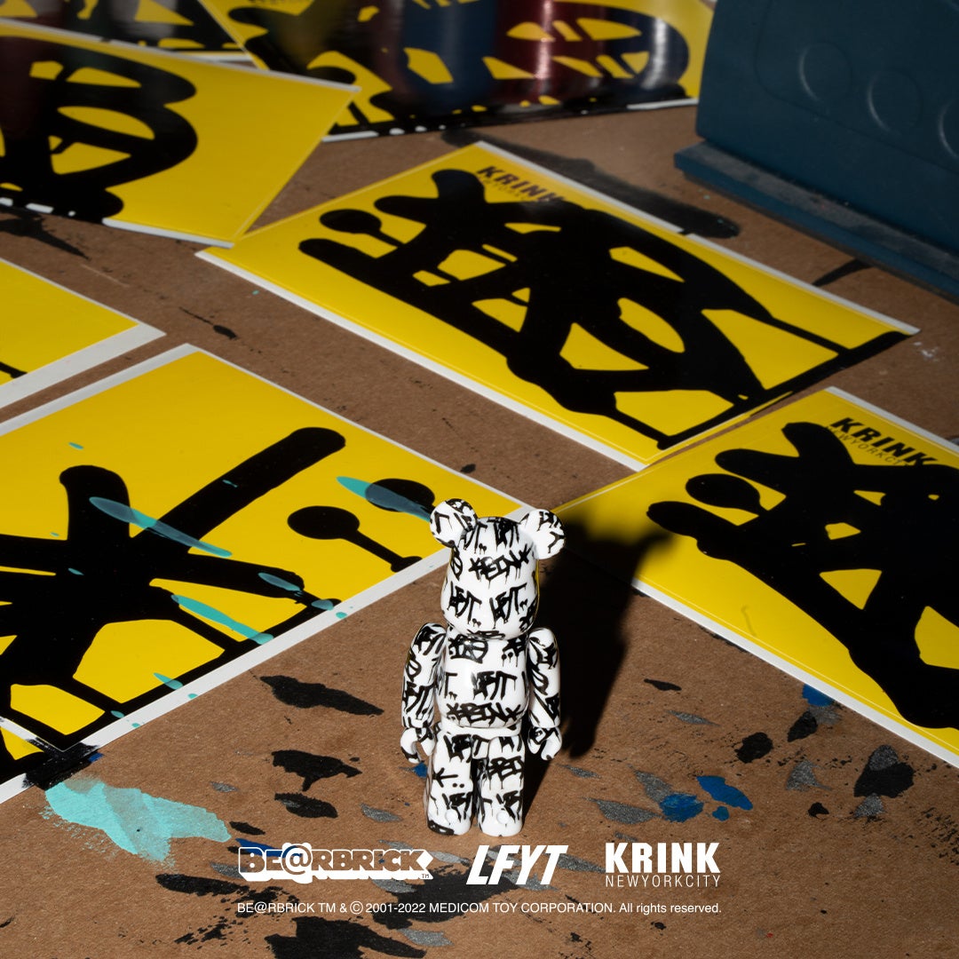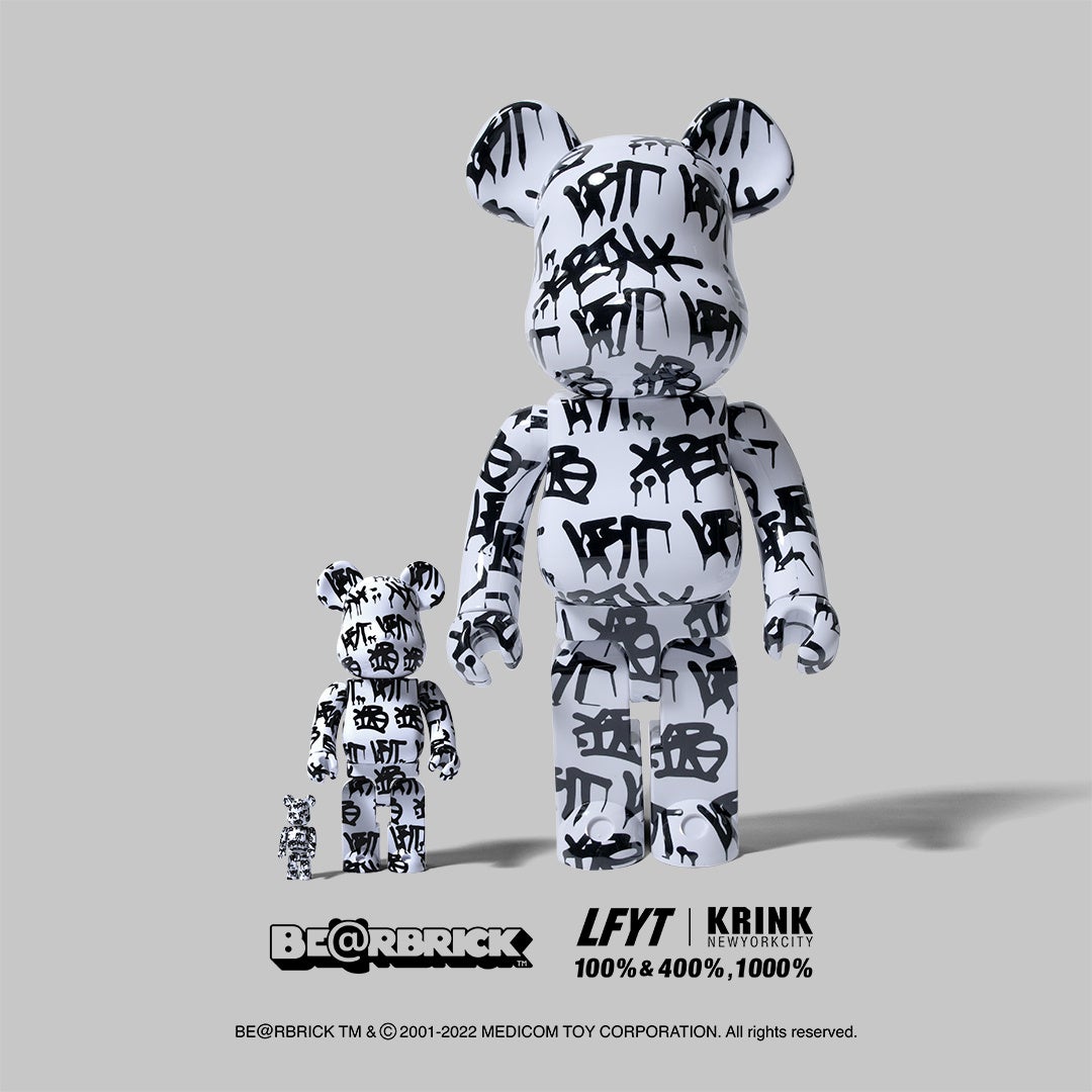 「KRINK」によるタギングを全面に落とし込んだ コラボ限定デザインで脚部後面には、「LFYT」と「KRINK」のロゴをプリント。100%と 400% の 2体セット、 1000 %サイズの2型リリース。