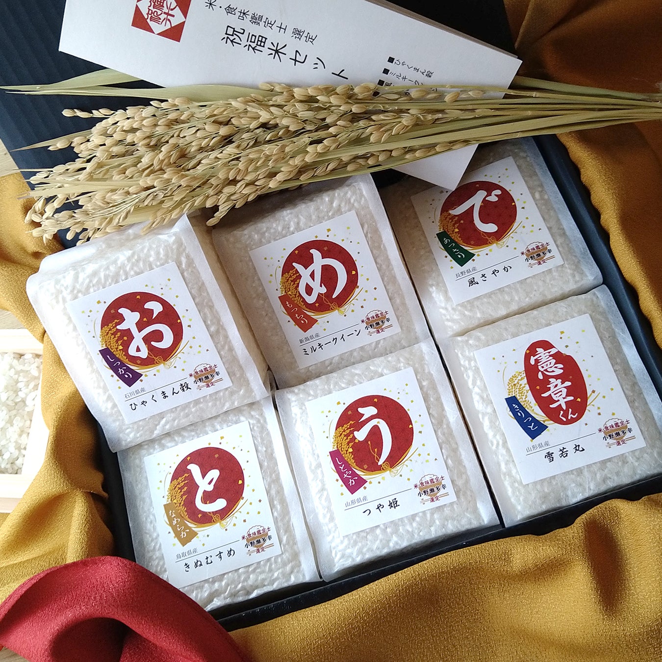 内容量:祝福米セット[300g(2合)×6種]、祝福米5kg[5kg(約33合)]