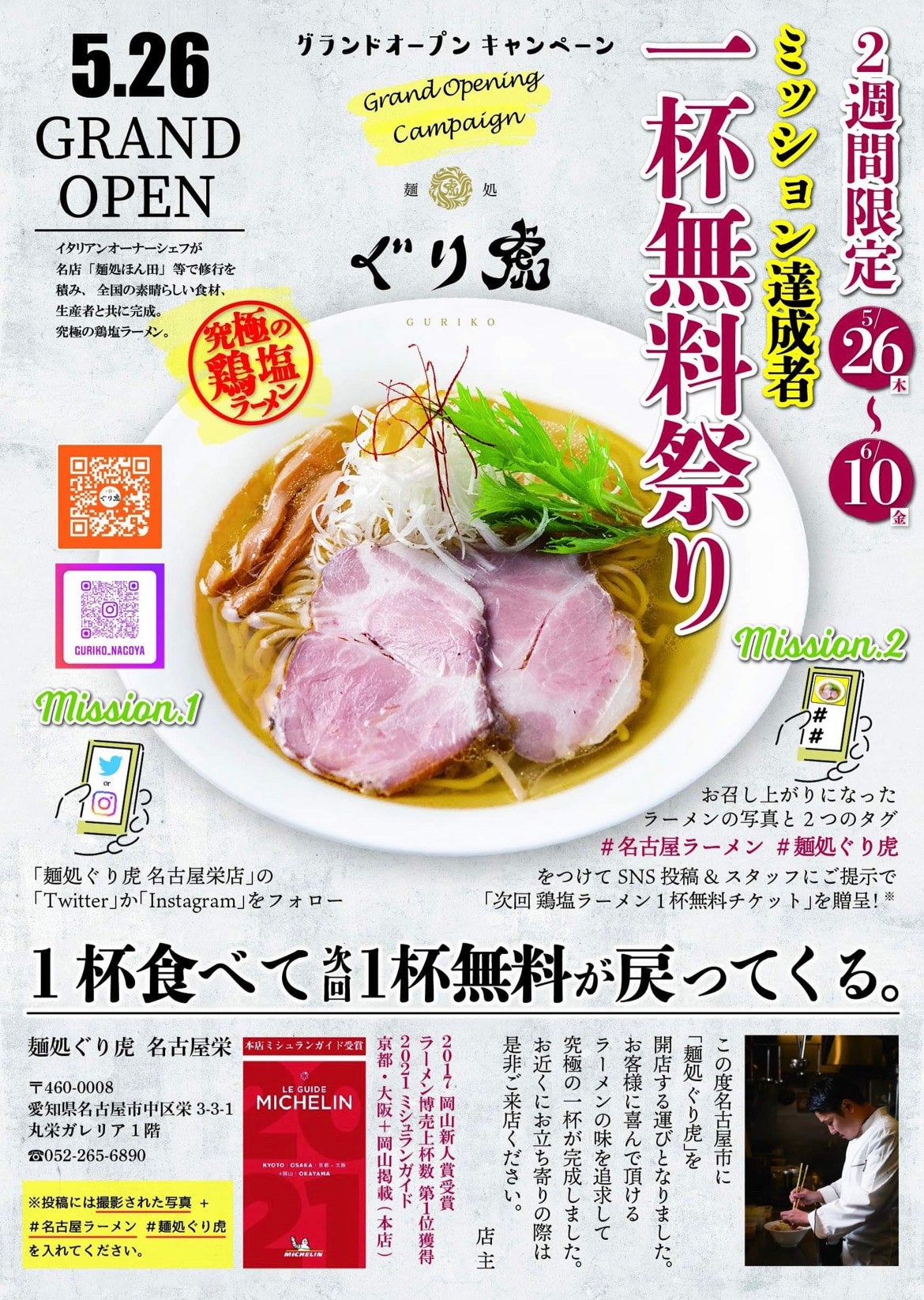 ミシュランガイド掲載ラーメン店 「麺処ぐり虎」名古屋市に初出店 5月26日(木)グランドオープン!