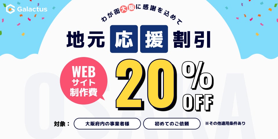 大阪の事業者を応援!制作費20%OFFの「地元応援割引」を開始 - Web制作会社ギャラクタス