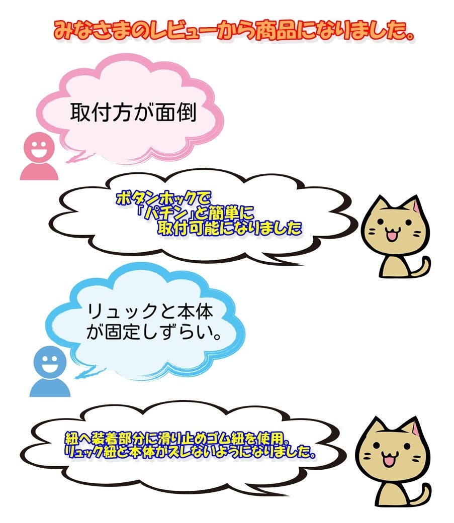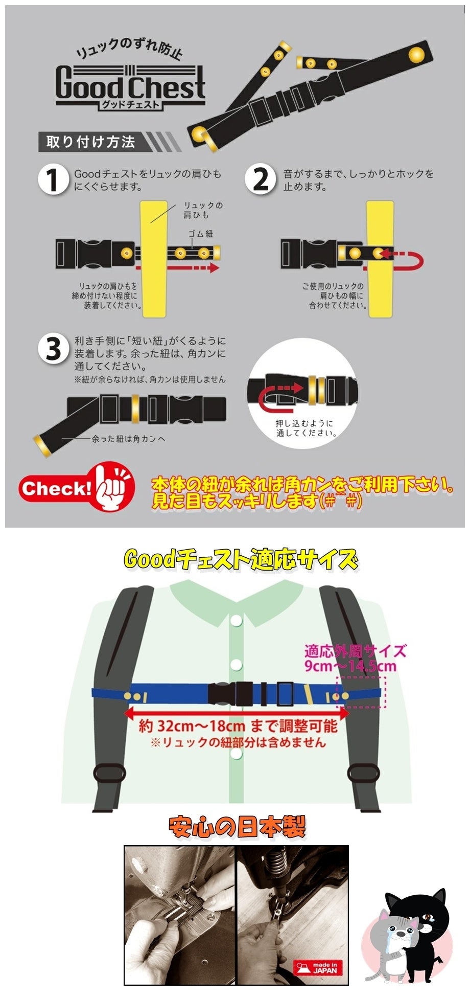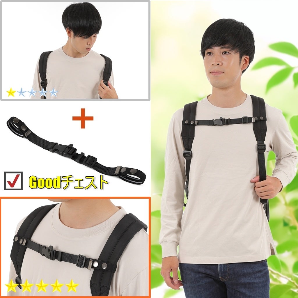 用途目的 リュックのすれ落ち防止身体とのフィッテイング性を高めてズレずにストレスと重量感を軽減。