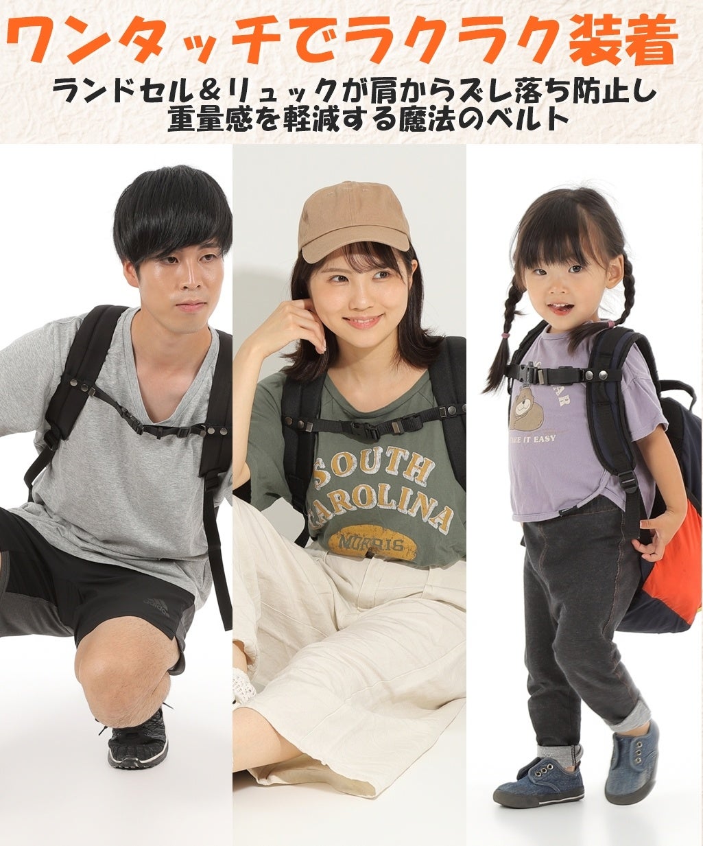 リュックのずれ落ち防止身体とのフィッテイング性を高めてズレずにストレスと重量感を軽減する魔法のベルトの予約販売を開始