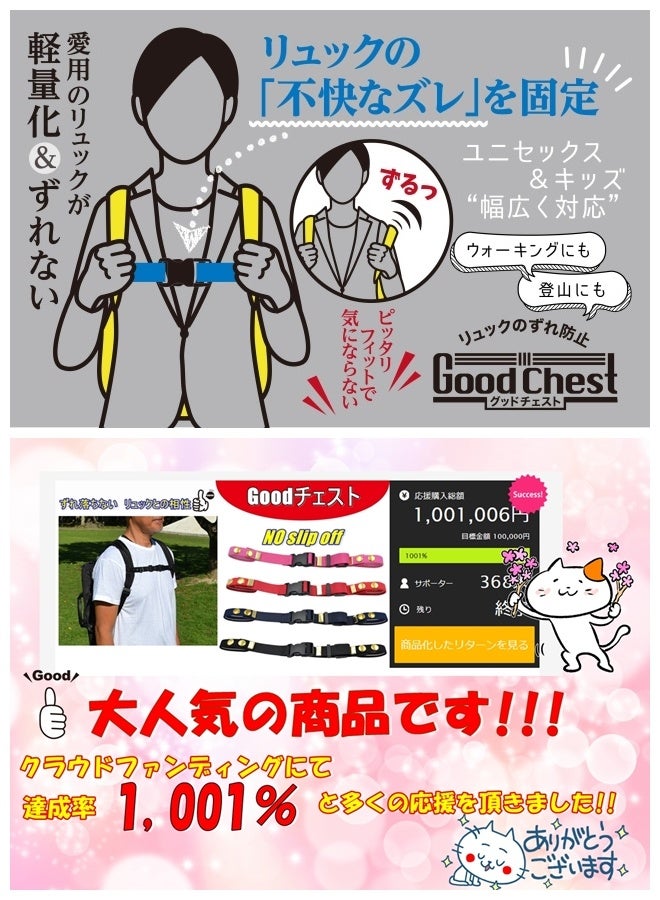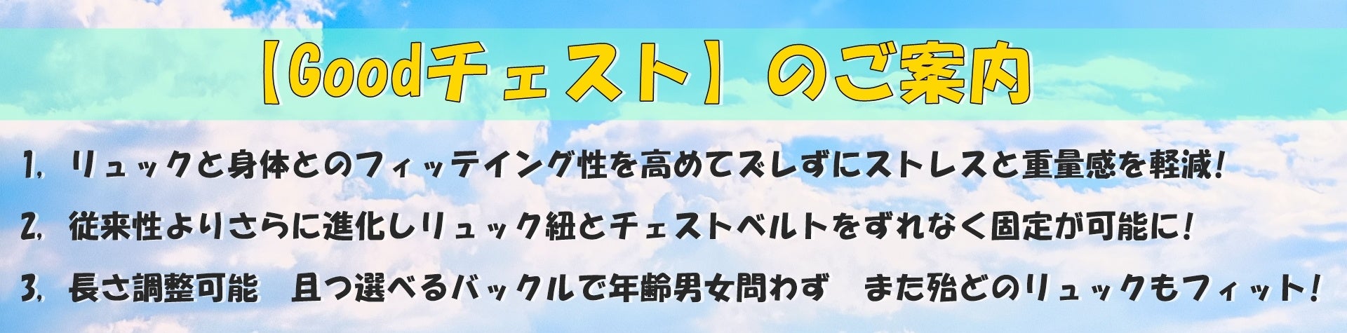 愛用のリュックにご活用頂きリュックと身体とのフィッテイング性を高める役割が出来たら…そんな願いを込めて、魔法のバッグチェスト「Goodチェスト」を作成しマクアケにて販売を予約開始致しました。
