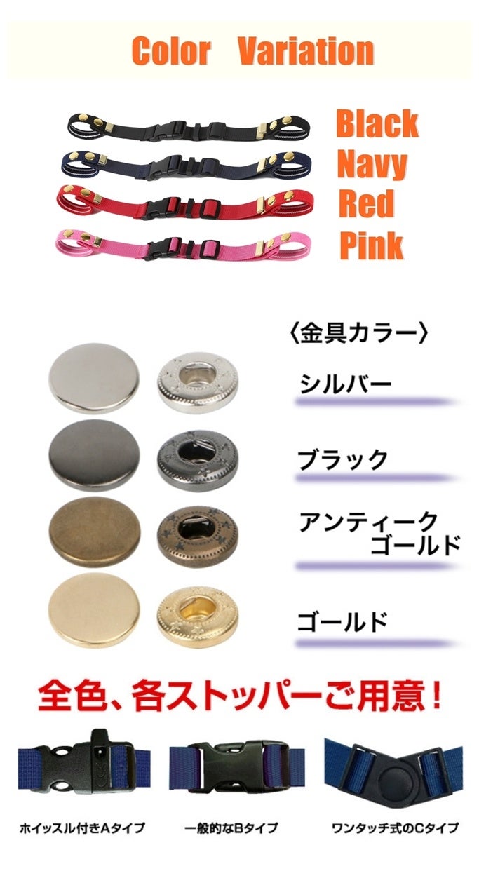 ★ 金具(ボタンホック&エンドパーツ)のカラー 4色。