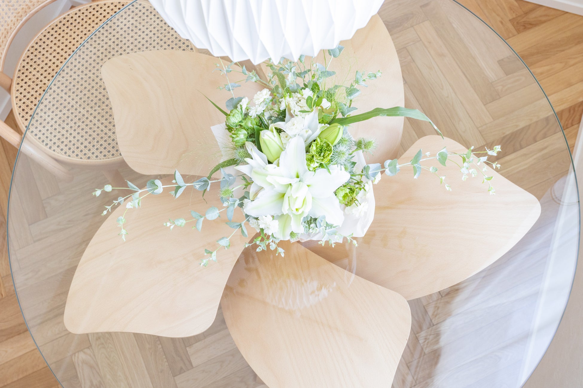 Hana-tableは形が花というだけでなく、中央部のくぼみに自分の好きな花を入れることができます。