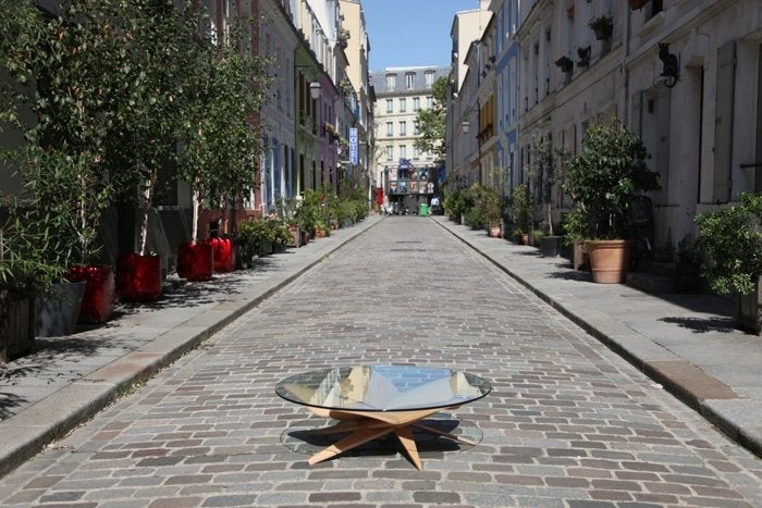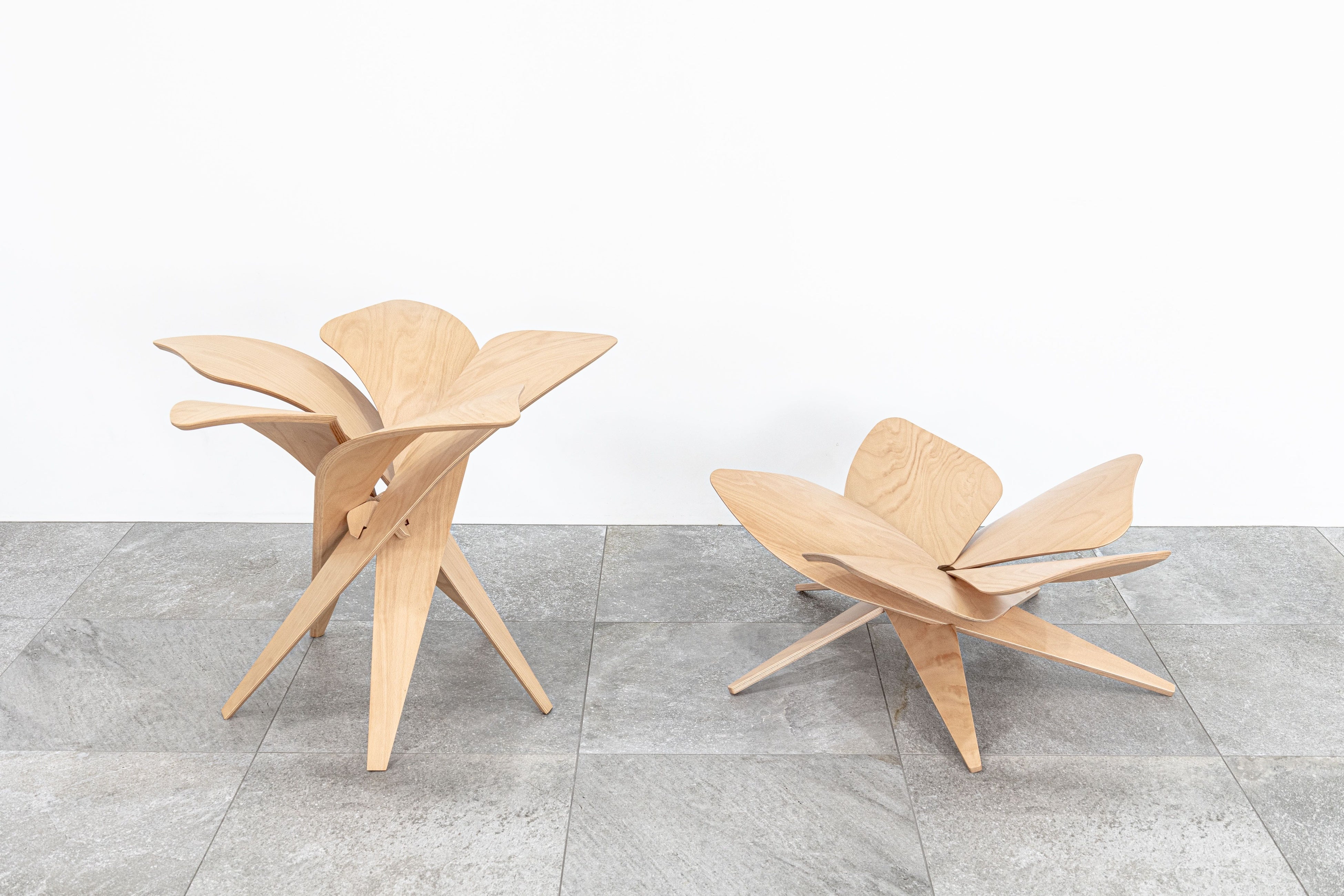 日本の折り紙の技法、組み木の技術、天童木工さんの高度な曲げ技術で、ネジや釘を一切使わずに自立するテーブル