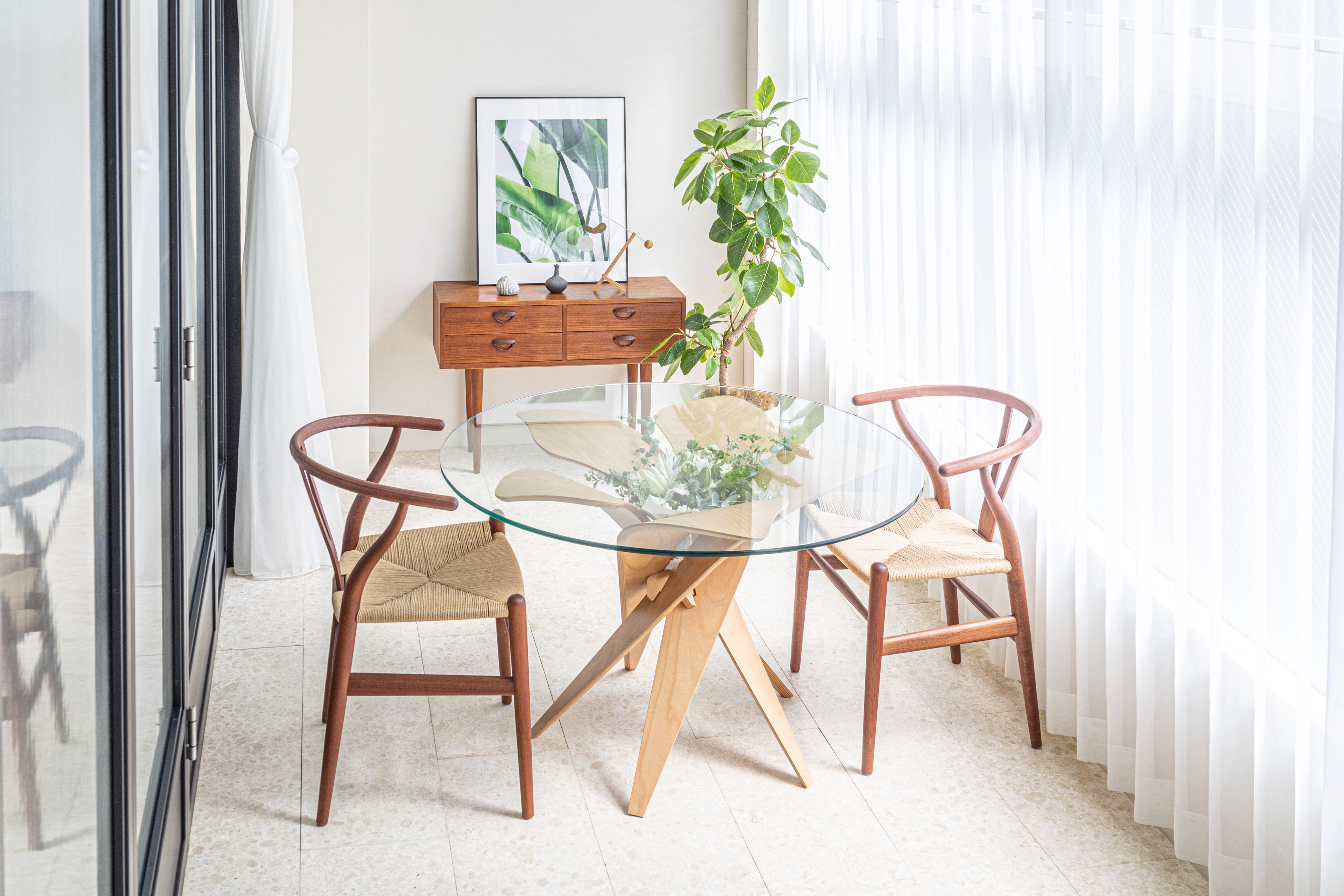 自然の形を生かしたシンプルなデザインなため、テーブルの上に花を置いてもとてもマッチします。