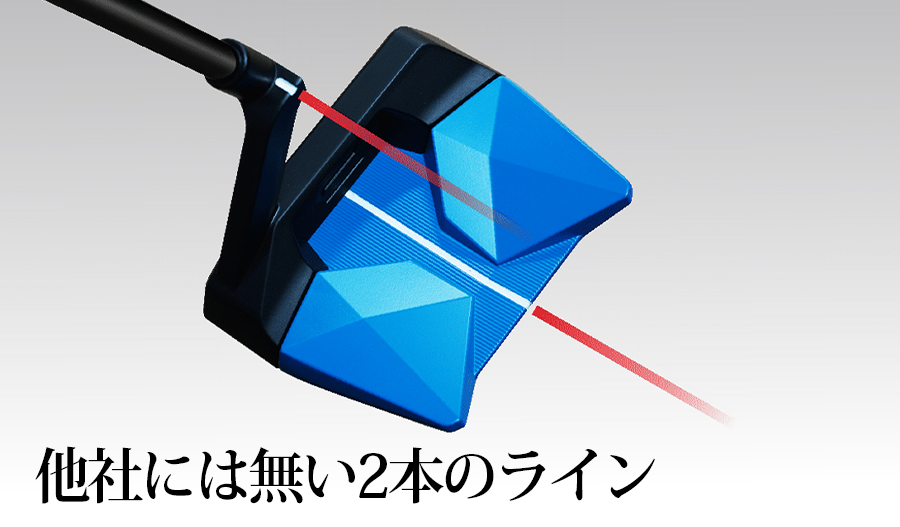 パターのネックとフェイスにある2本のラインをピッタリ合わせれば、ミリ単位の調整が可能で、常にボールを目線の下にセットできます。