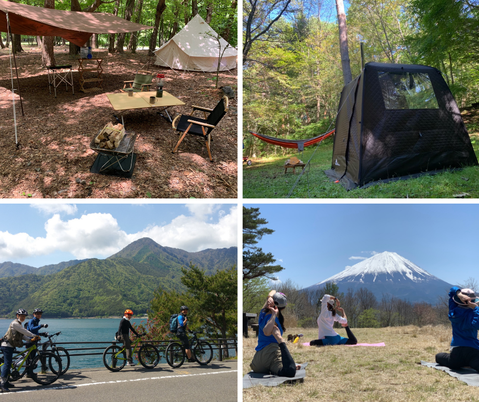 また、通年でご利用頂いている既存ツアー『手ぶらキャンプ』『ヨガトレッキング』『テントサウナレンタル』『富士山の見える絶景カフェトレッキング』『樹海から湖まで満喫マウンテンバイクツアー』を含め、たくさんの方に自然を感じてもらえるアクティビティをご用意しております。