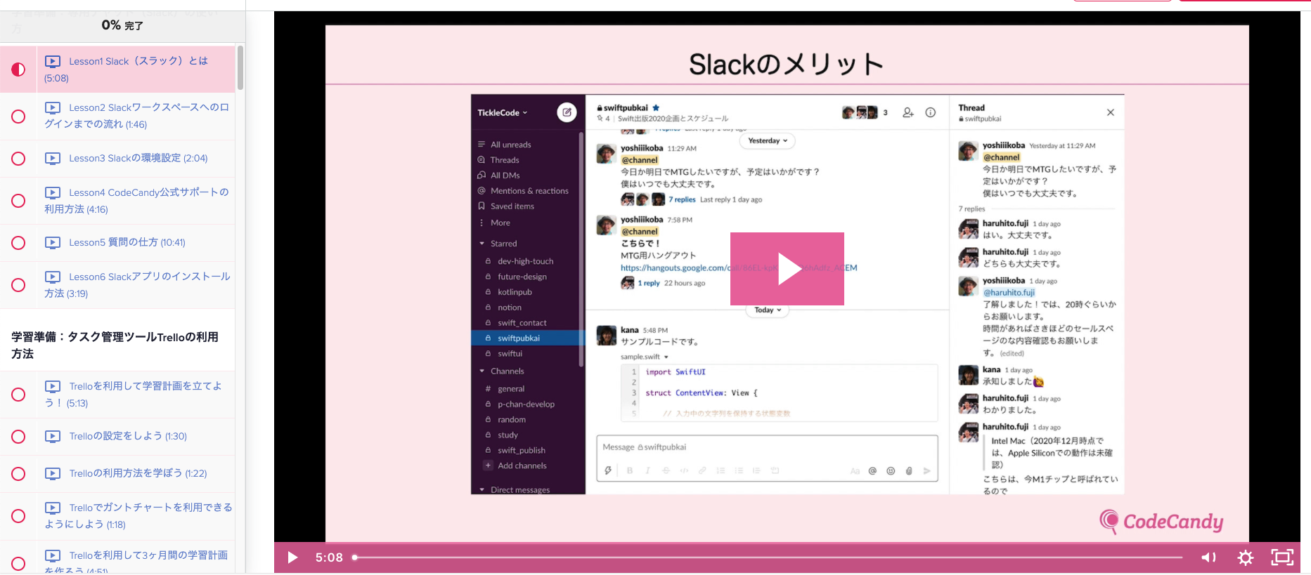 - サービス内容:動画教材での学習、課題実習でのアウトプット、オリジナルアプリの開発、Slack(チャット)でのサポート、グループメンタリング、個別メンタリング、転職支援(企業分析、書類チェック)