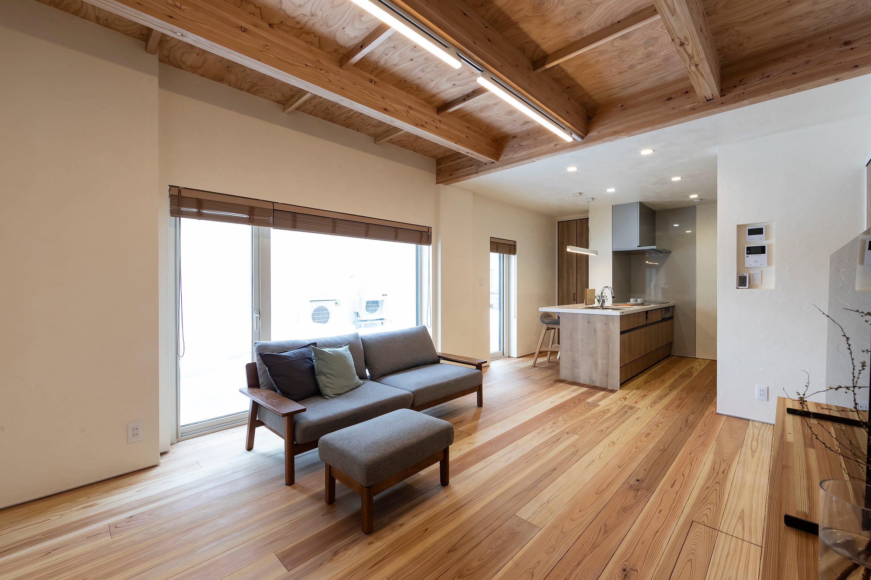 - 特徴1 【道南杉を使用した「ハル壁」を外壁とフローリングに使用】