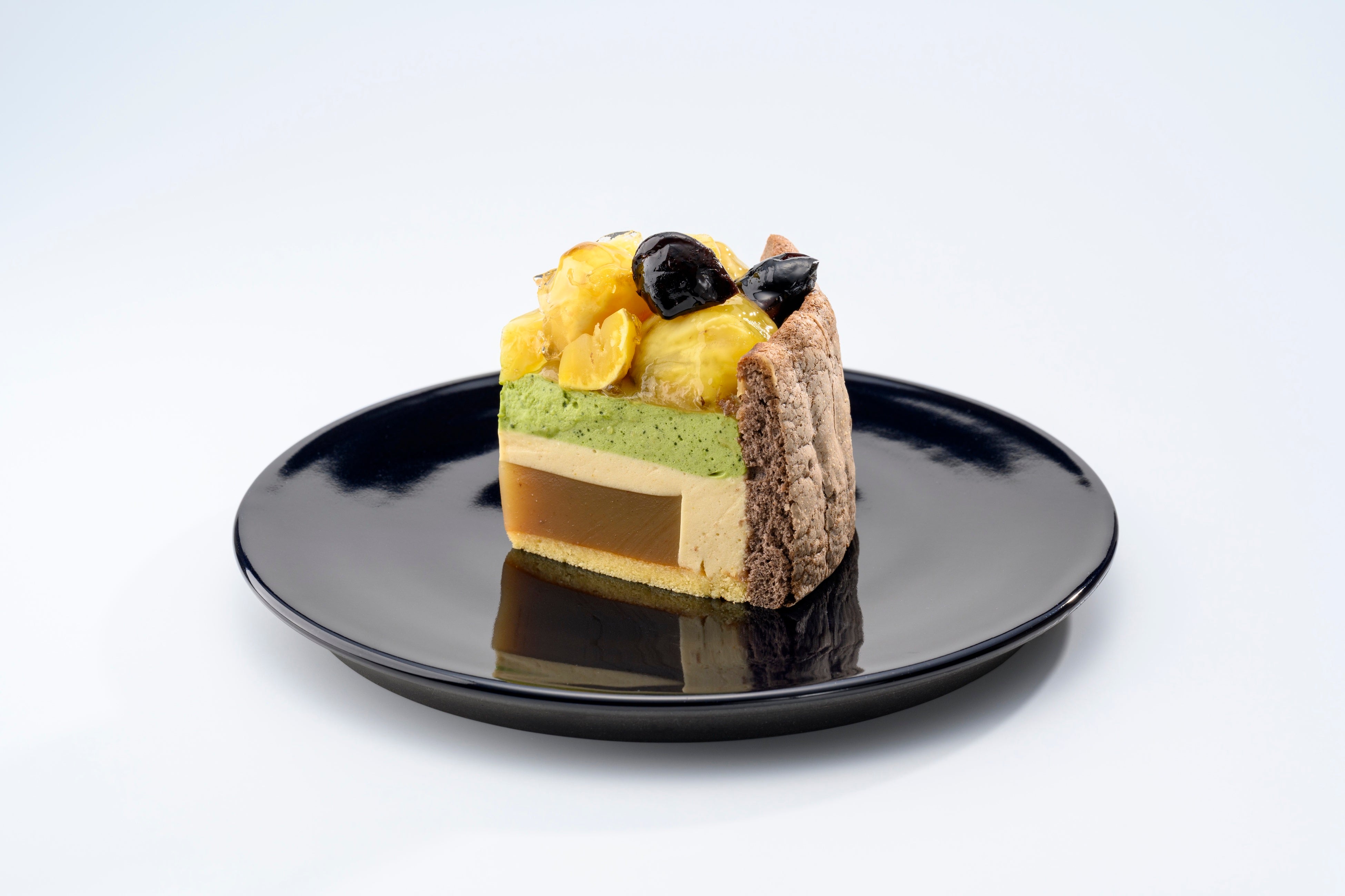 既に定評のある小布施堂の和菓子。栗餡のおいしさを洋菓子でも味わってもらいたいと、今回はじめて本格的なケーキの開発に取り組みました。ビスキュイで覆われたシャルロットケーキには、滑らかな口当たりの栗のムース、抹茶のムースと栗餡を重ね、さらにその内にアクセントの栗羊羹を忍ばせました。贅沢にトッピングした大粒の岸根栗と花豆(信州産)が食感のインパクトを与える、様々な味わいが折り重なった仕上がり。クリスマスやお正月など特別な時に楽しみたい、思う存分和栗のおいしさが楽しめるスペシャルケーキです。