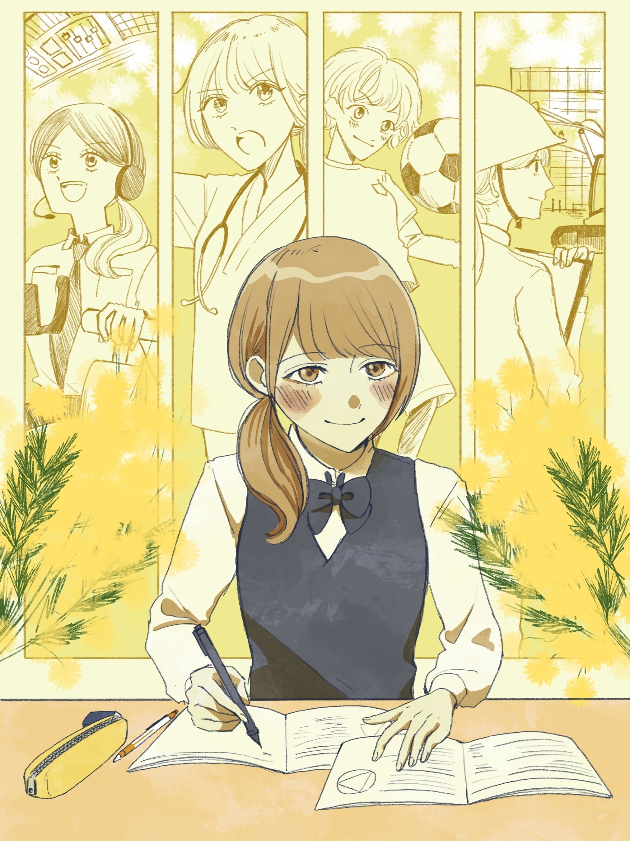 私が女性の社会進出のために必要なものは「勉強」だと思います。もっと世界で男女平等に学ぶ権利が与えれ、色んな職業で女性が活躍する姿をみたいので今回のイラストを描きました。