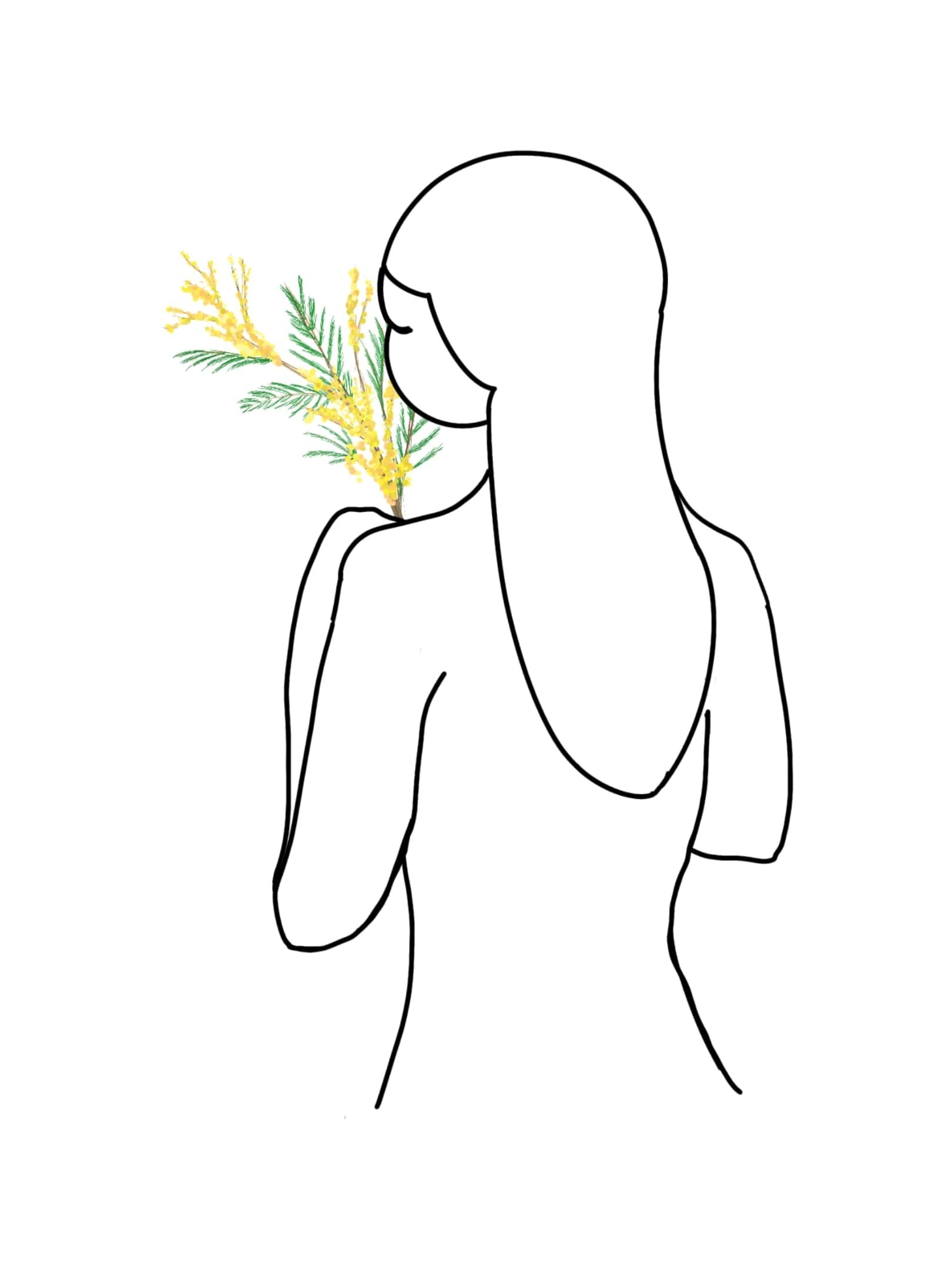 自分自身を女性としてのイメージに使用し、ミモザの花と組み合わせることにより、私たちは優しさと思いやりのある女性で、また強さを兼ね揃えていて、みんなをキラキラと輝かせる存在だと伝えています。