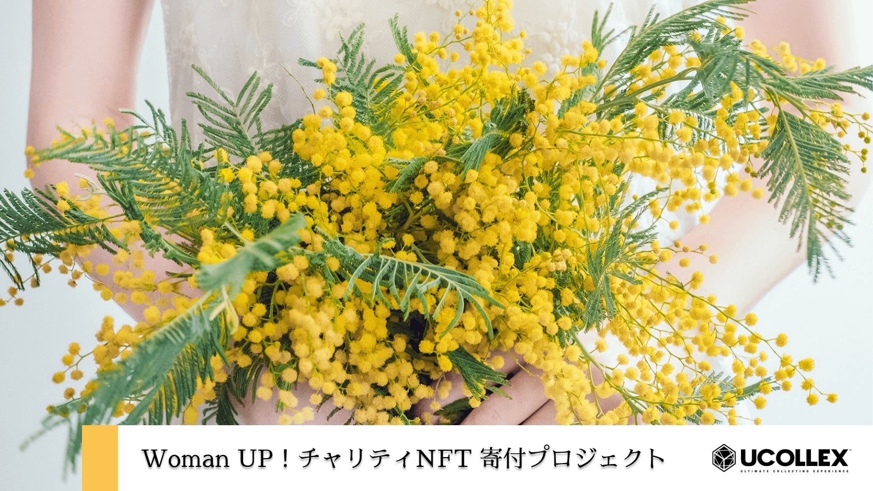 「Woman Up!」では、クリエイターに、国際女性デーの象徴であるミモザの花の絵を描いてもらいNFT化し、UCOLLEX初のバーチャルクリエイターである「Udonate」が参加クリエイターを代表したアカウントとして販売。一次販売およびマーケットプレイス上で取引される作品の収益は、女性のいのちと健康を守るために活動している日本生まれの国際協力NGO、「JOICEP(ジョイセフ)」に全額寄付いたします。