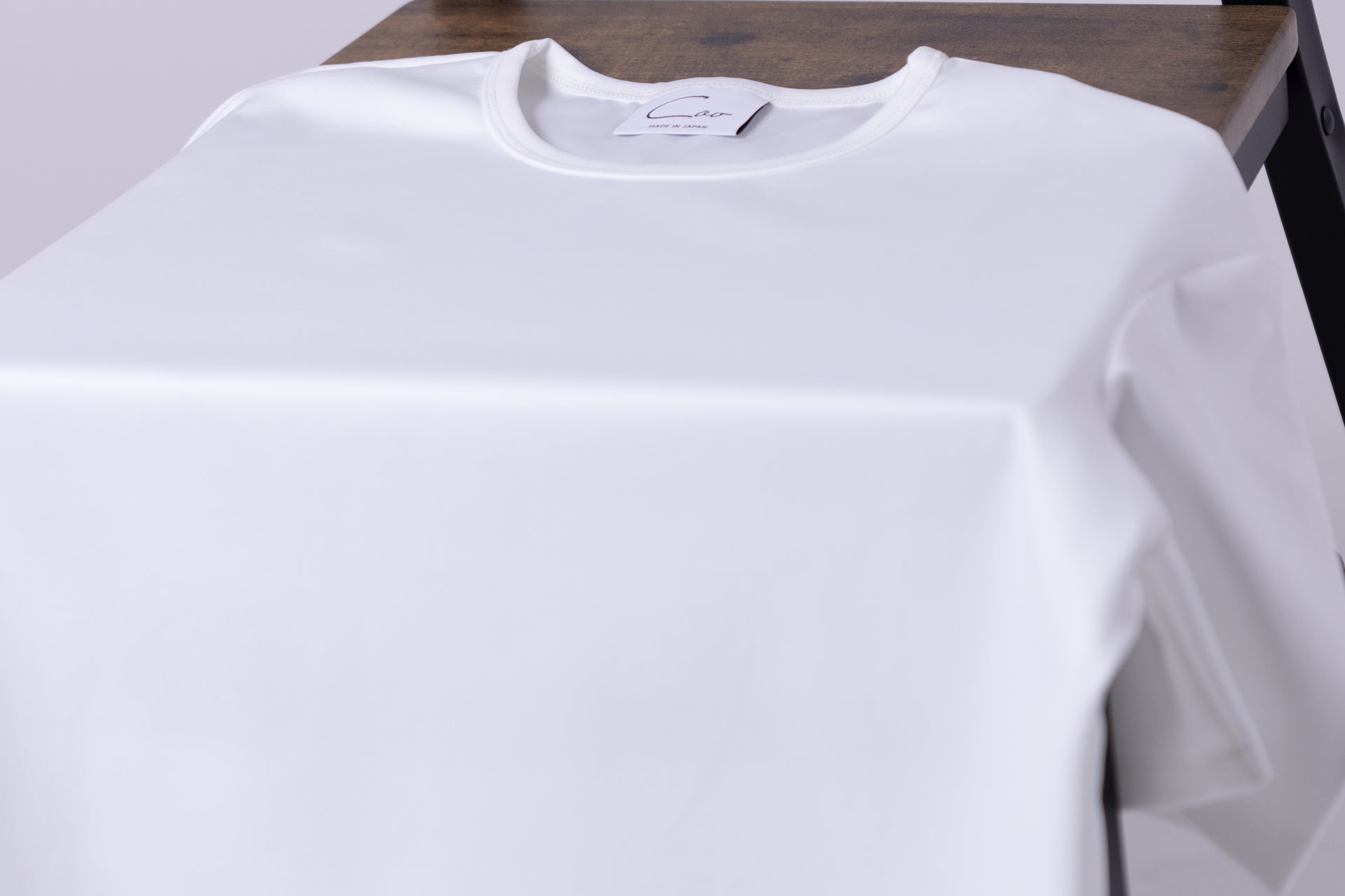 そこでCovの白Tシャツは、ロゴなし無地を徹底。生地は、機能性とファッション性を両立させた、シワになりにくく、しっかりしていて高級感があるものを採用。全部で5つのTシャツモデルも、すべてこだわりのデザインとなっているため、ロゴやプリントがない無地Tシャツながら、十分なファッション性を確立しました。余計な小細工不要、究極にシンプルでスタンダード。人生の一張羅になり得る白Tシャツになっております。お客様からも「これ一枚でオフィシャルな場でもカジュアルな場でも見劣りしなく着用できる」とのお声を頂戴しております。