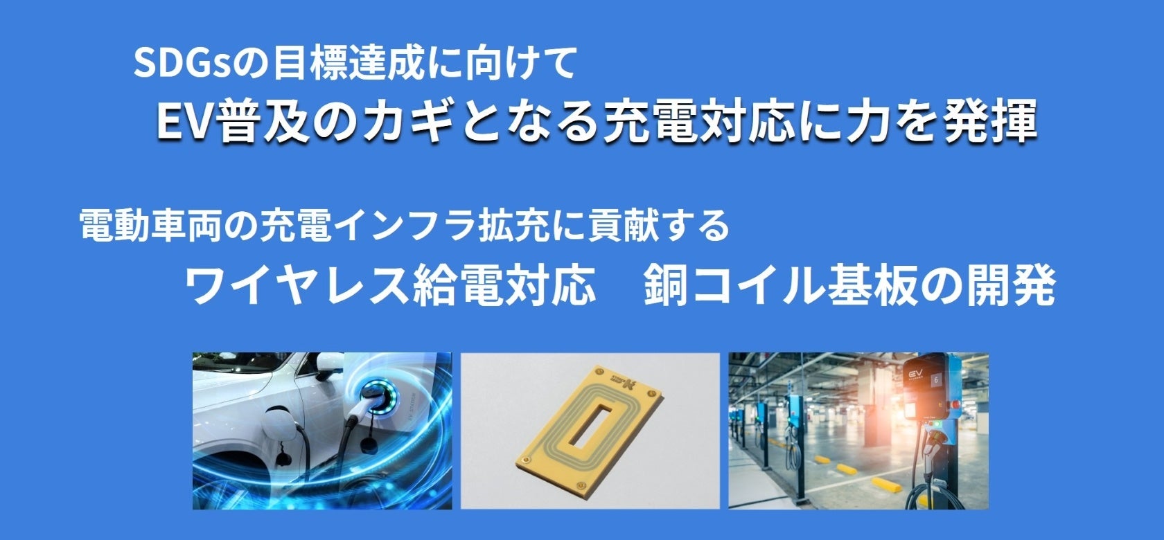 これらの課題への対応として、2019年から産学共同で銅コイル基板の開発を進めてまいりました。これまでに、銅コイル基板を用いたトランス基板の量産化、ワイヤレス給電向けの銅コイル基板の試作開発を行っております。