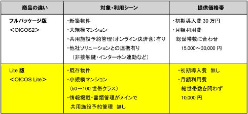 100世帯以下のマンション・物件に限らせていただきます。101世帯以上、または共用施設受付がある場合は、弊社「OICOS《フルパッケージ版》」でのご提供となります。