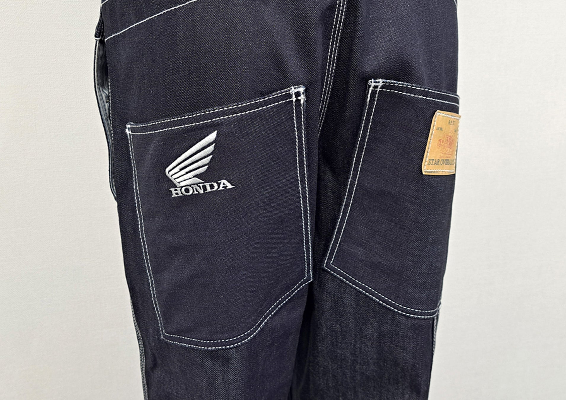 ・生地に13オンスのリジットデニムを使用し、山本被服の裁縫技術を駆使することで、ダックス125にマッチしたデザインにするとともに、普段着としても着用できるカジュアル感も演出