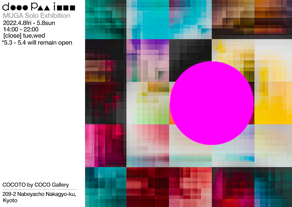 京都木屋町でCOCOTOを運営する株式会社COCO Gallery(本社:東京都目黒区、代表取締役:芳賀真)は、KYOTO GRAPHIE 2022サテライトイベント”KG+”にて、現代アーティストMUGAの個展d●●●p▲▲i■■■(ディーピーアイ)を開催致します。