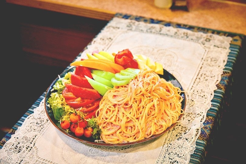1皿3人前のフルーツ大盛パスタが名物のレストラン。