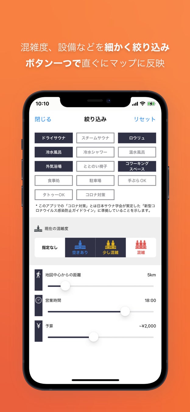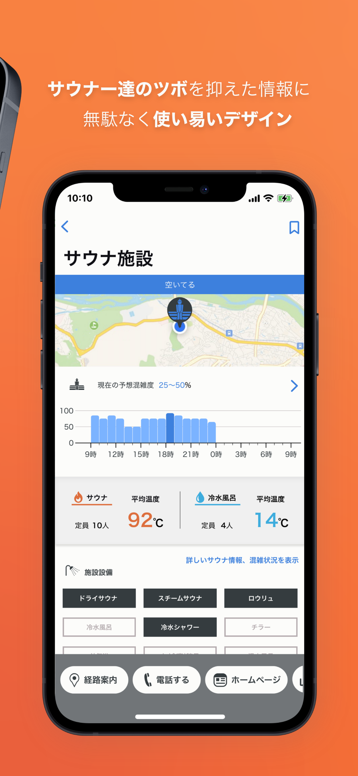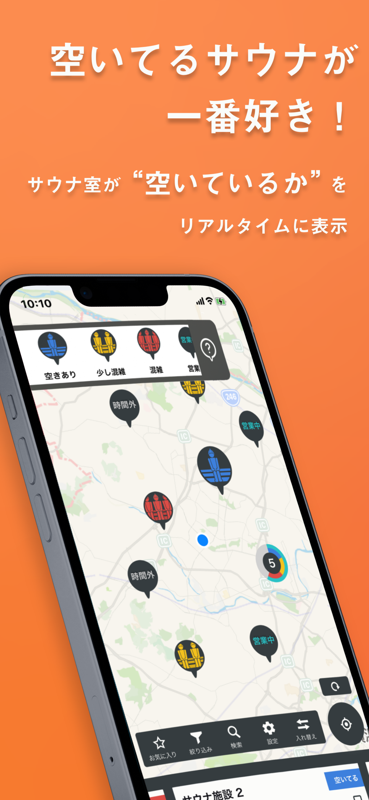 ・機能: サウナ室内空き具合表示、サウナ施設情報表示(G P S連動)、お気に入りサウナ施設登録機能