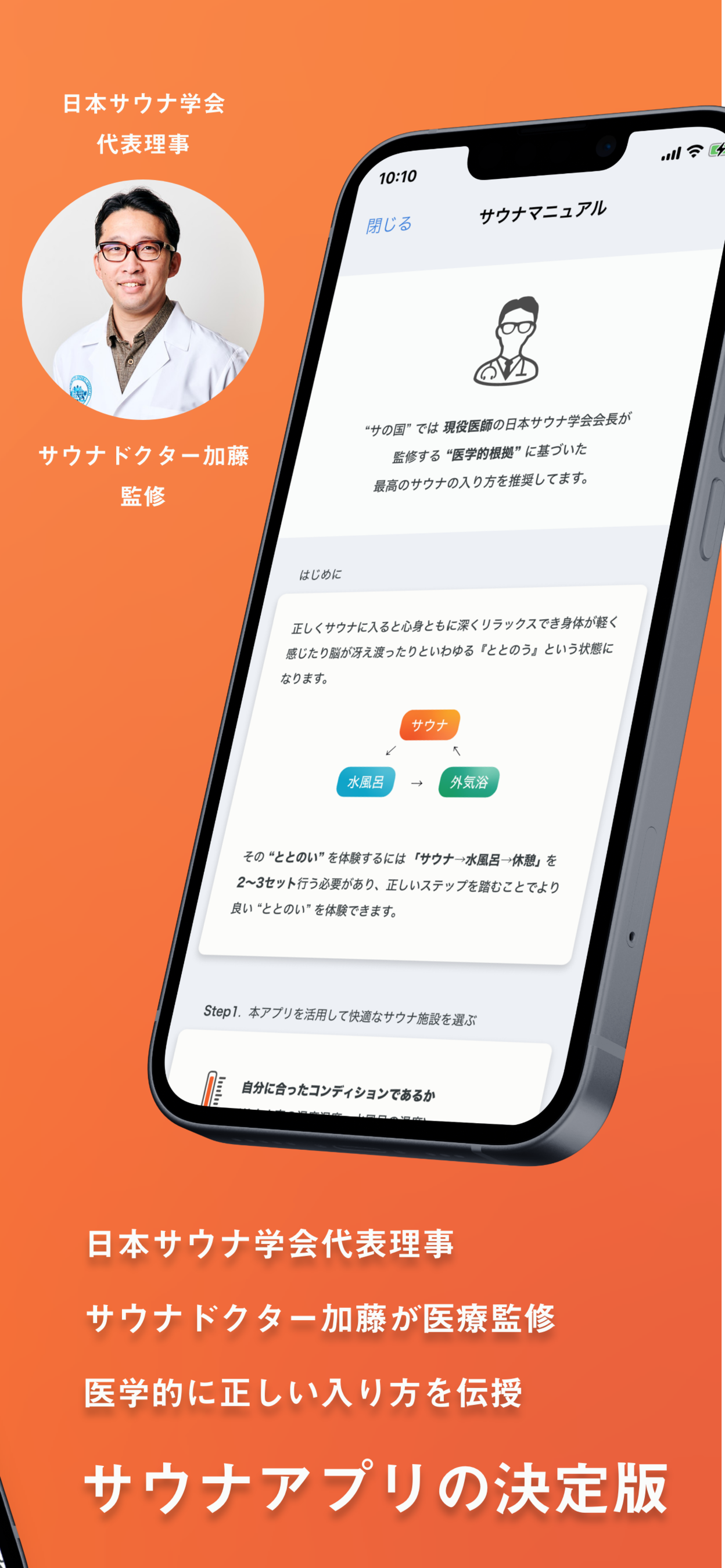 代表の加藤は日本サウナ学会代表をつとめる医師・医学博士でありサウナの予防医療としての有用性を発信しています。病気になりたくなければサウナに入りなさい、このように脅かされて行動を変えるのではなく、気持ちよくサウナに入り、気づいたら“ついでに”めっちゃ病気が減っていた!そんな明るい社会が理想だと考えています。多くの人が本アプリを使ってくれて、より多くの人がサウナを好きになり、“ついでに”みんなが健康になってほしい。そのためには無料がベスト。そんな純粋な気持ちで公開しています。