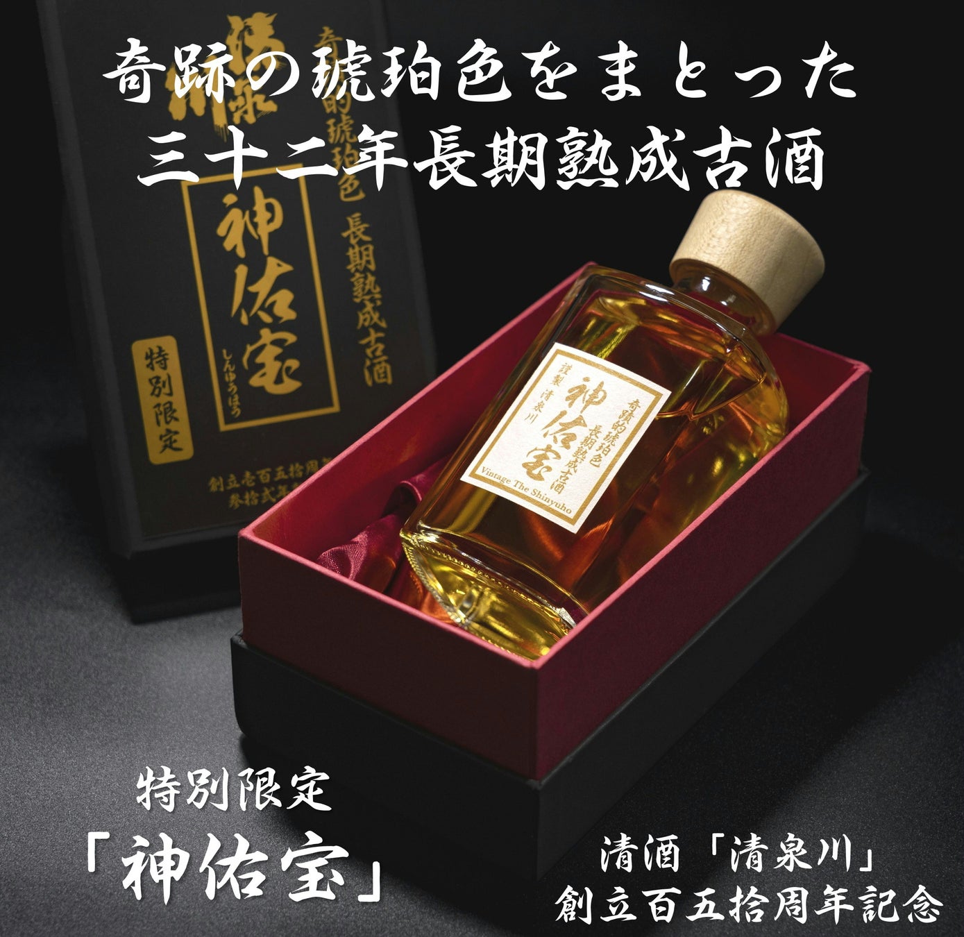 創立150周年記念・特別限定販売 奇蹟の琥珀色をまとった32年長期熟成古酒「神佑宝」(しんゆうほう) 清酒「清泉川」醸造蔵元・株式会社オードヴィ庄内