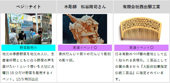 後援:近畿経済産業局、大阪府、岸和田市、貝塚市、泉佐野市、貝塚商工会議所、南海電気鉄道株式会社