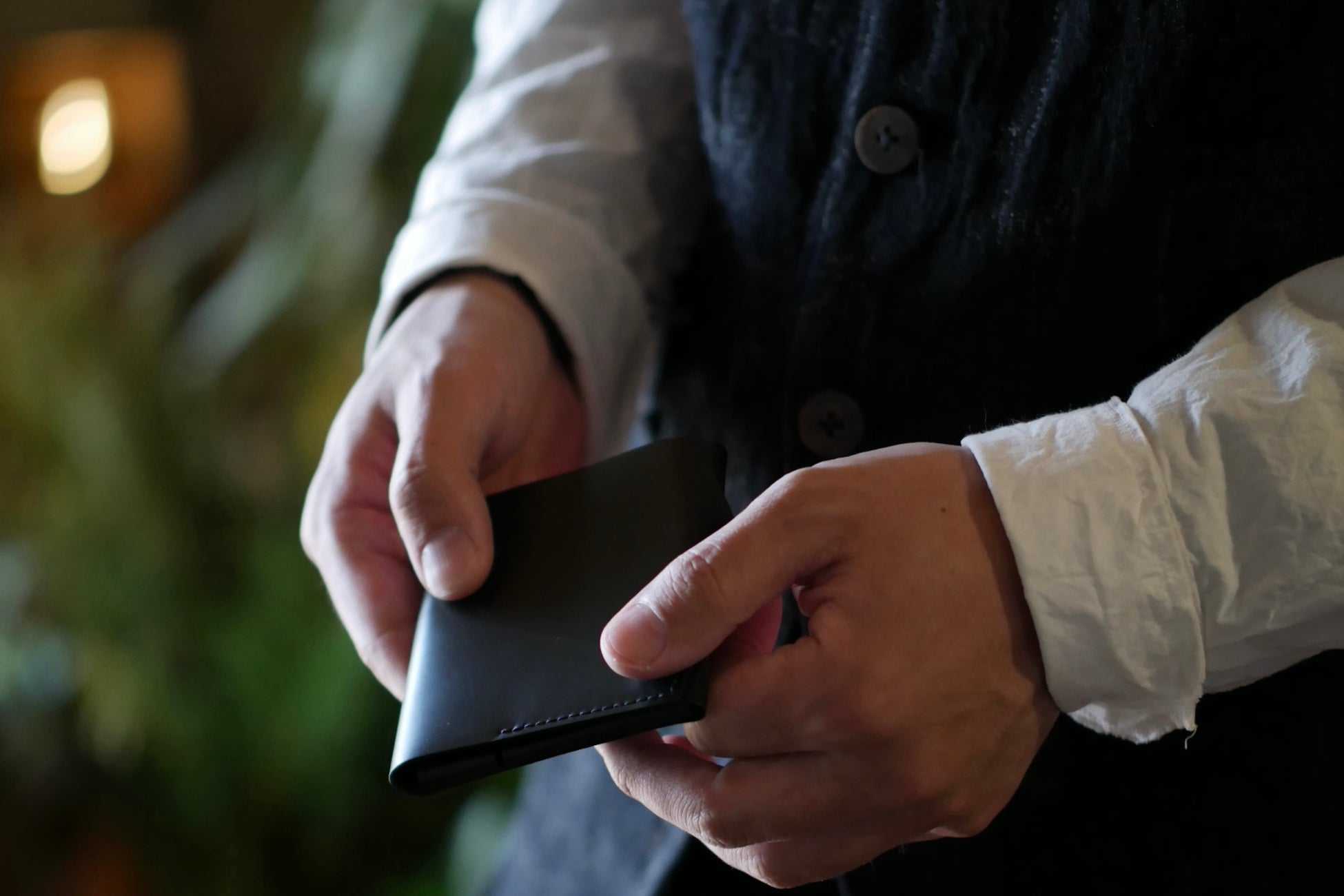 5年間改良をし続けたnew-usuha3は、カードを入れても厚み約1cmで、閉じたままでもカードが出し入れでき、キャッシュレス派、現金派、双方の「使いやすい」を最優先に作られた、最高傑作となる二つ折り財布です。