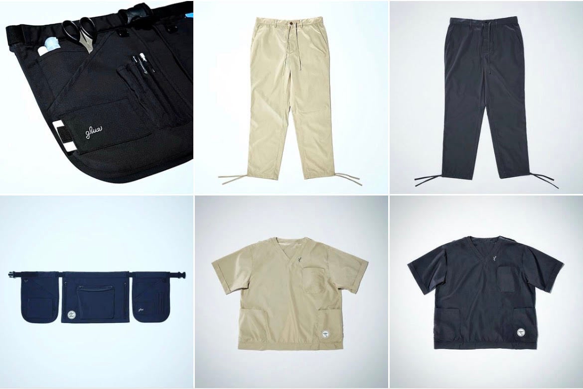 glueでは2021年11月からオリジナルブランド「ORIGINAL OVERSIZE SCRUB WEAR」「ORIGINAL TOOL POUCH」を展開しています。(https://glue.style/)