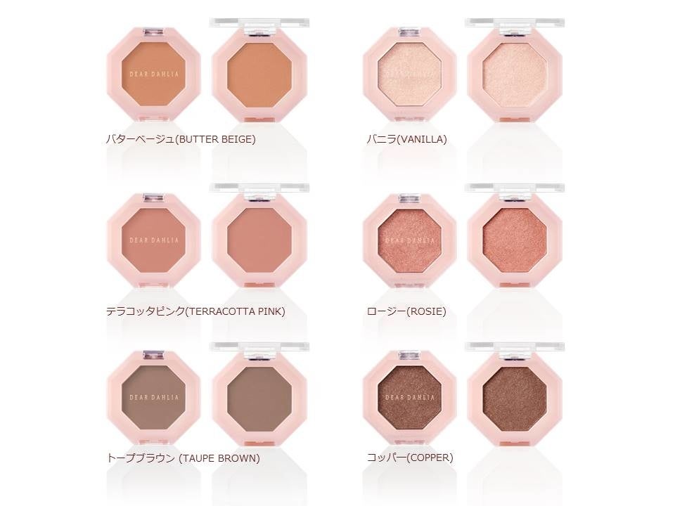 ダリアの花が咲く瞬間の色合いをそのまま閉じ込めたようなユニークなグラデーションカラーのチーク。 落ち着いたアプリコットピーチからライトプラムまで、ディアダリアならではの華やかで雰囲気のあるチークルックを演出します。