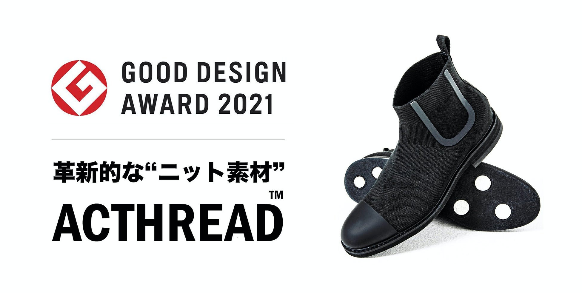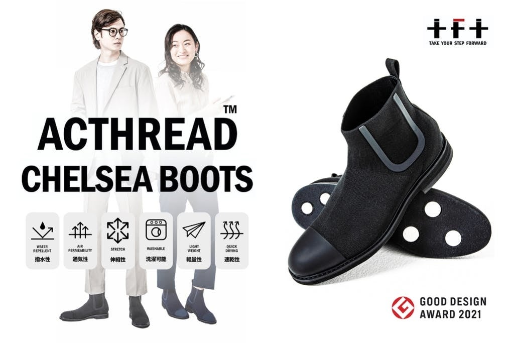 撥水性の高いニット素材を採用したことによる高い機能性、デザイン性などが評価され「ACTHREAD CHELSEA BOOTS」を含む「+F+」の「ACTHREAD」シリーズは2021年グッドデザイン賞を受賞しました。