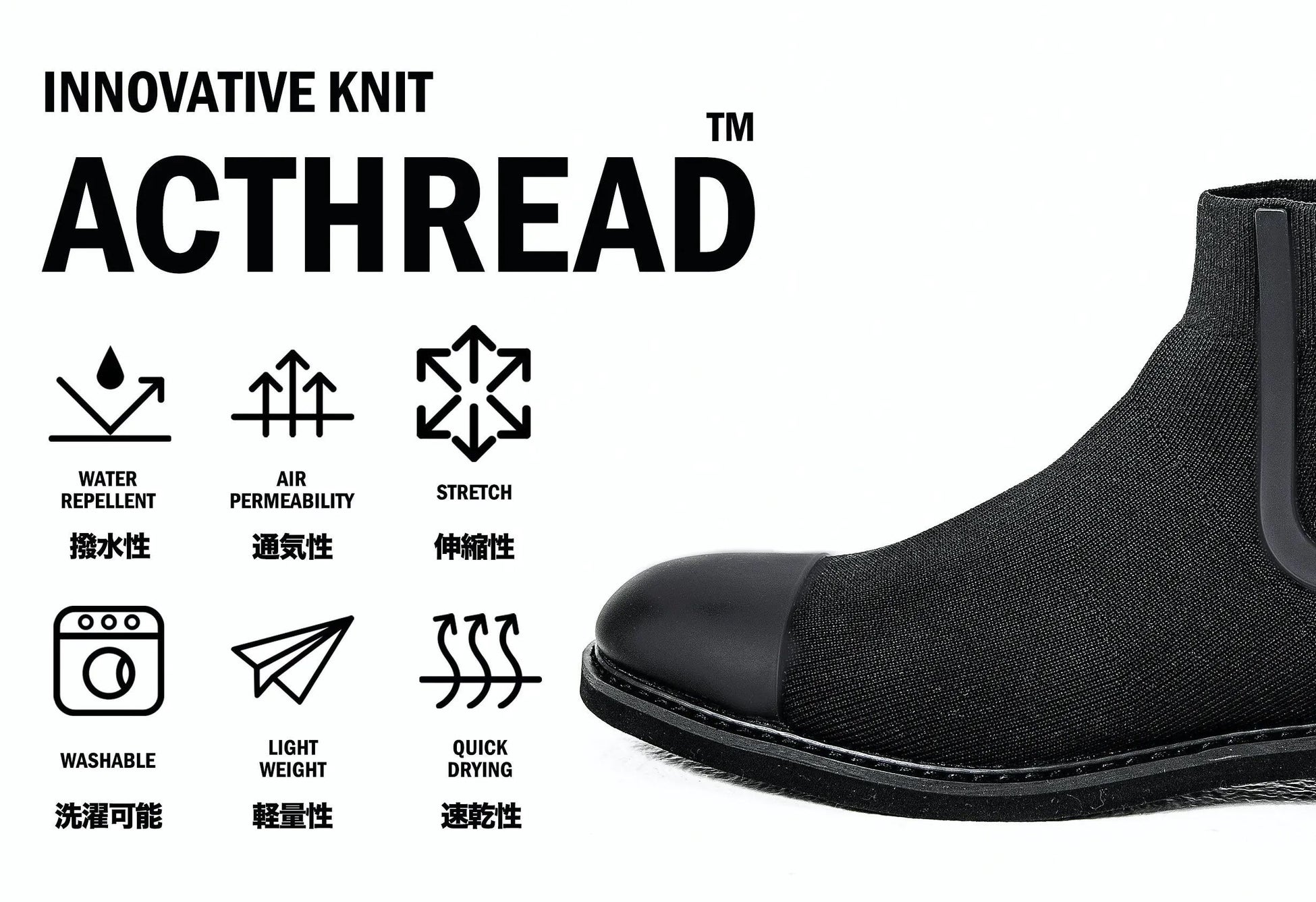 革新的ニット素材の全天候型ブーツ「ACTHREAD CHELSEA BOOTS」
