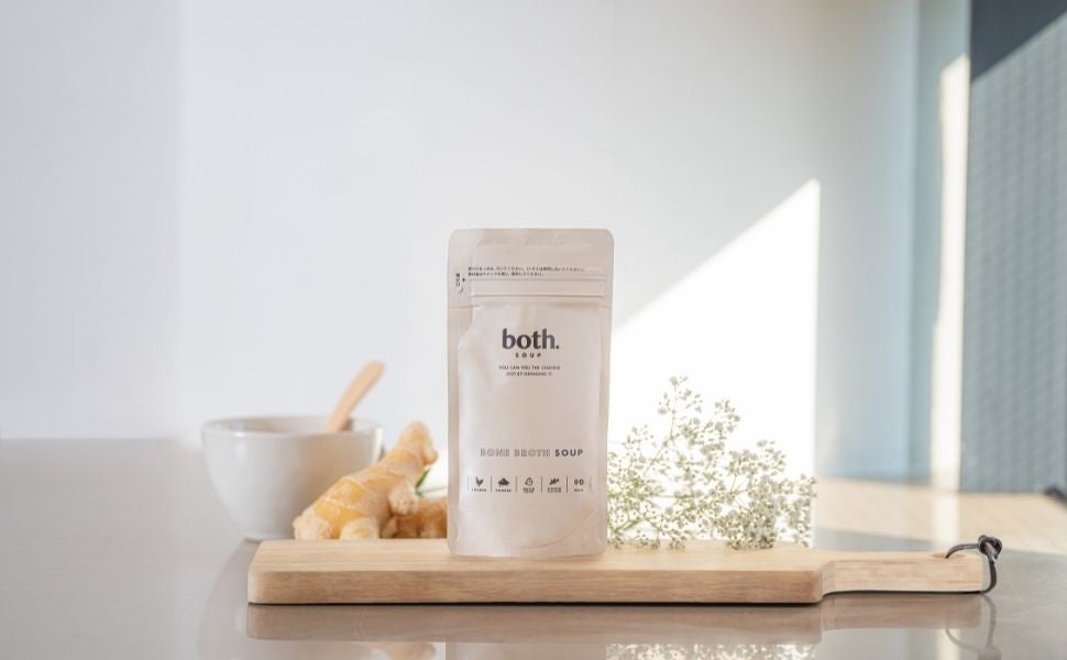 bothSoupは、継続できるファスティングサポートスープとして、NYでは一般的な「ボーンブロス」を日本人の好みに合わせた生姜風味にし、飲み続けられるスープを開発しました。