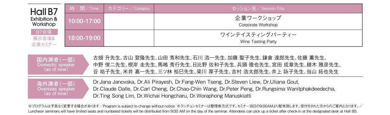 ※開催期間中、すべてのコングレス会場、展示会、Workshop(企業セミナー)に入場できます。
