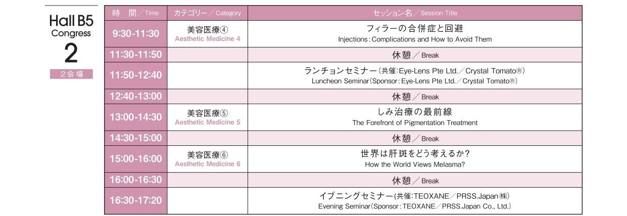 B5ホール(コングレス会場) : 9:30~17:30 ※9:00受付開始